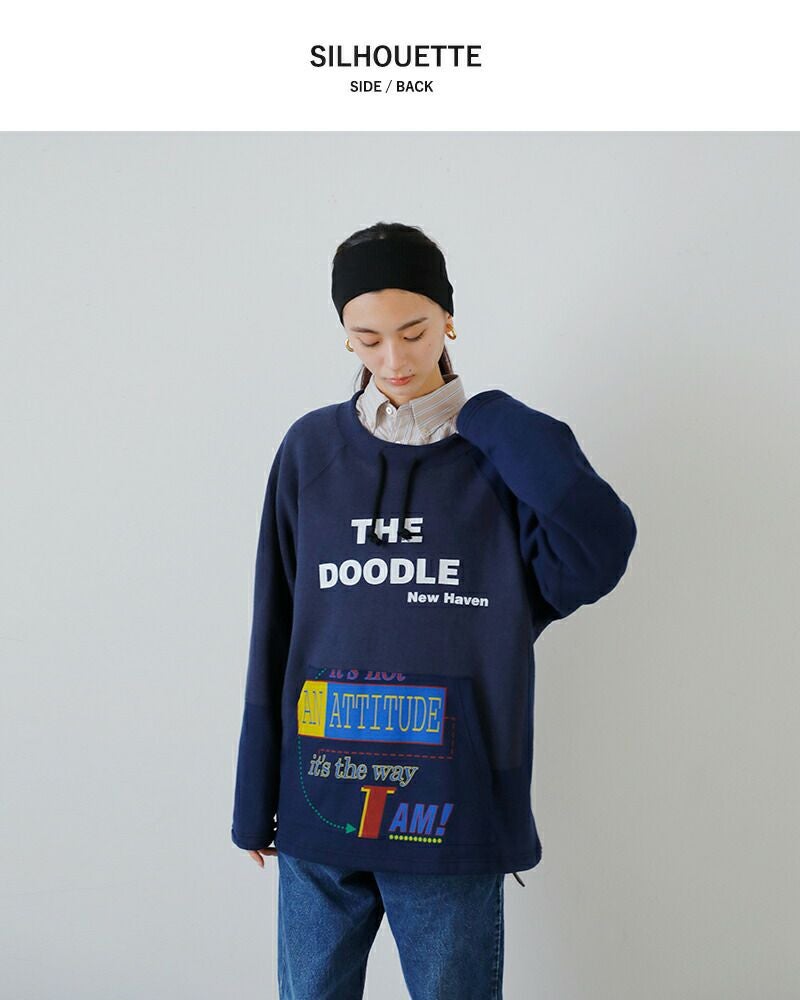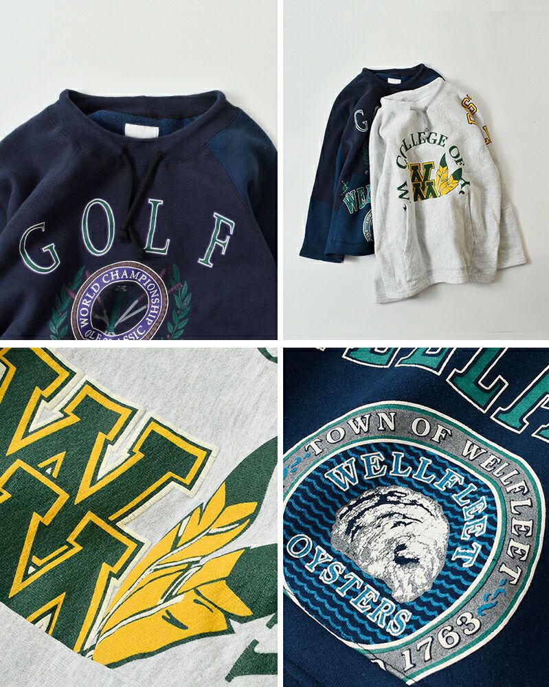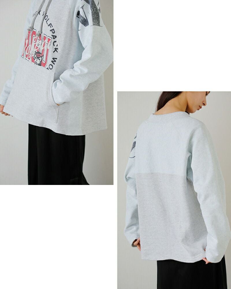 ベースはコットン100%の裏起毛スウェット。ユーズドのスウェットらしく、全体的に裏起毛の毛羽が収まり、ダマになっています。長いシーズン使える生地感で、季節の変わり目にもぴったりです。古着らしい生地に馴染んだ色味がいい雰囲気です。