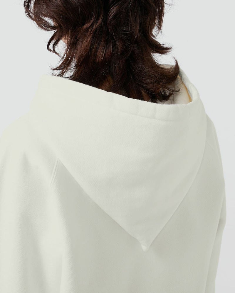 オーガニックコットン裏毛を使用した、コットン100%のスウェット。旧式のトンプキン編み機でゆっくりと編まれた生地は空気を含み、柔らかくふっくらとした生地感です。製品染めとバイオウォッシュ加工を施すことにより、着込まれたスウェットのような色味と風合いを表現しています。