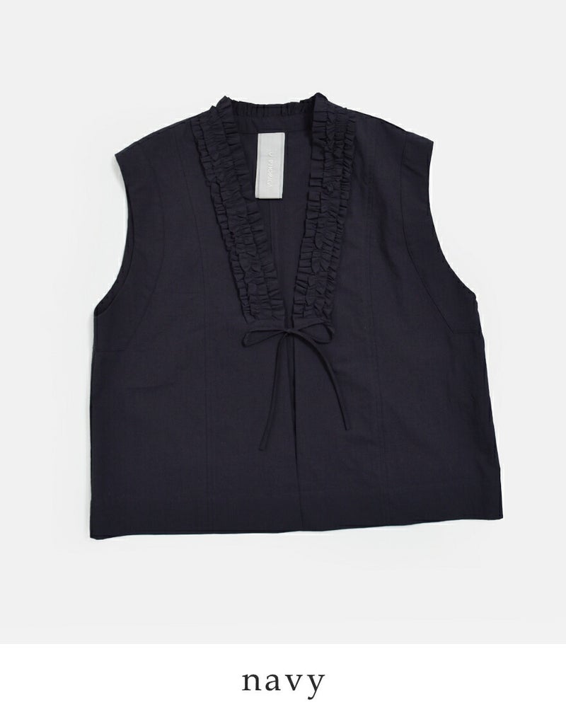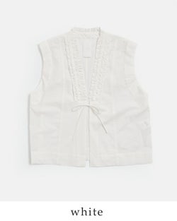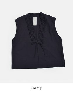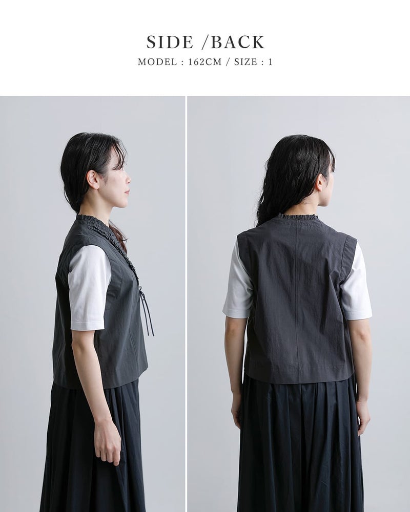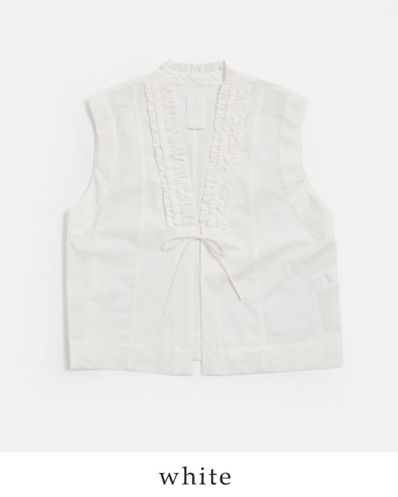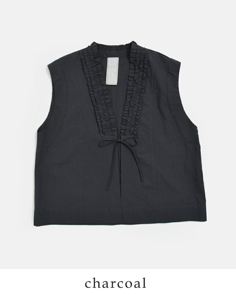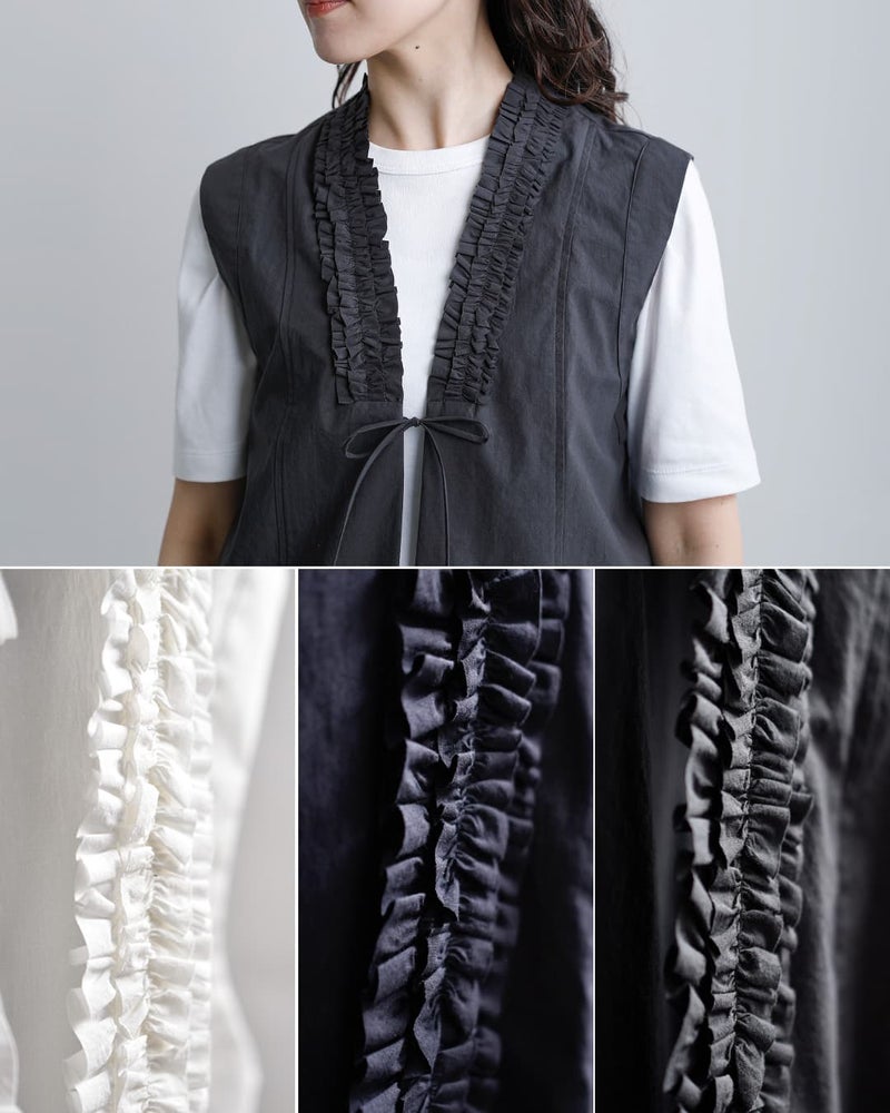 近江晒コットン Vネック フリル ジレ u24-12688-61