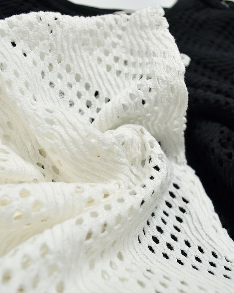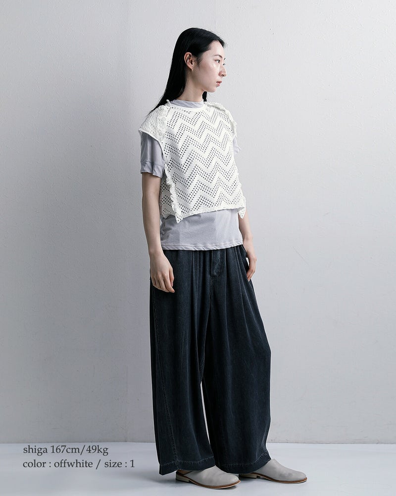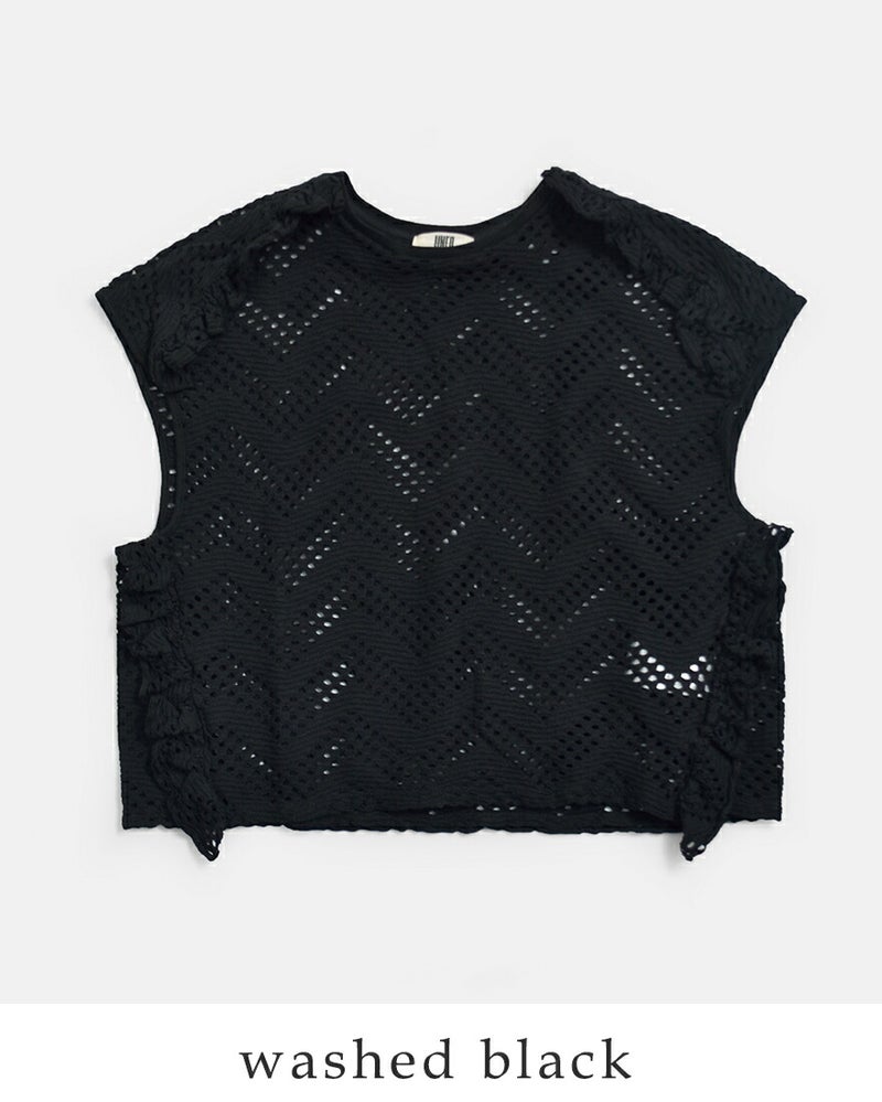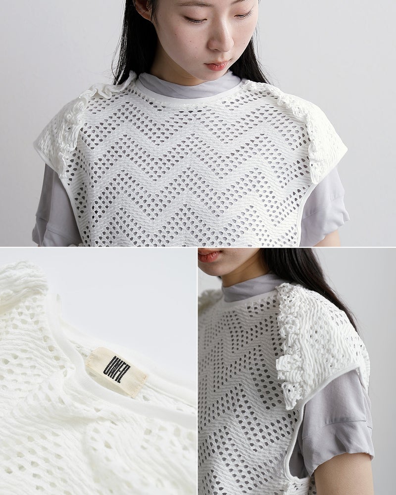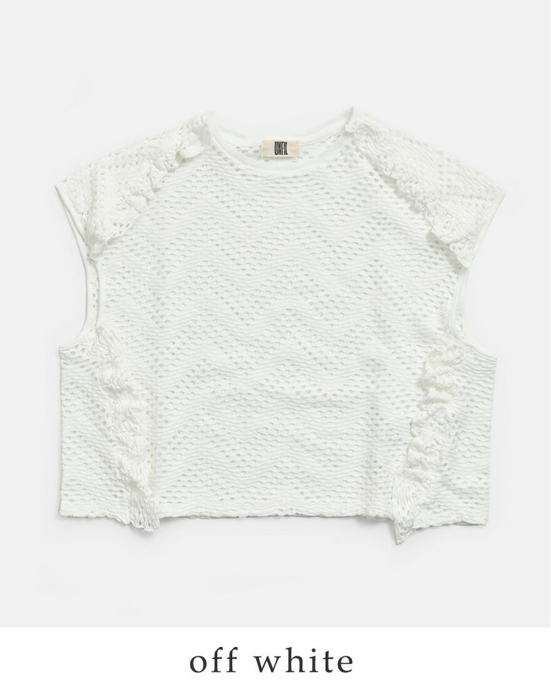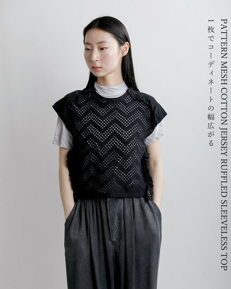 パターンメッシュ コットン フリル ノースリーブ プルーバー “pattern mesh cotton jersey ruffled sleeveless top” wxsp-uw130