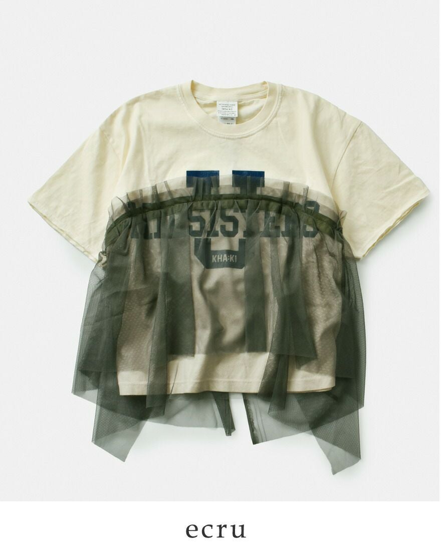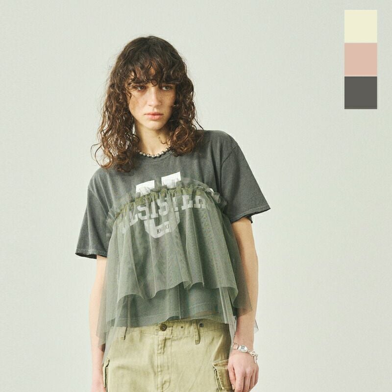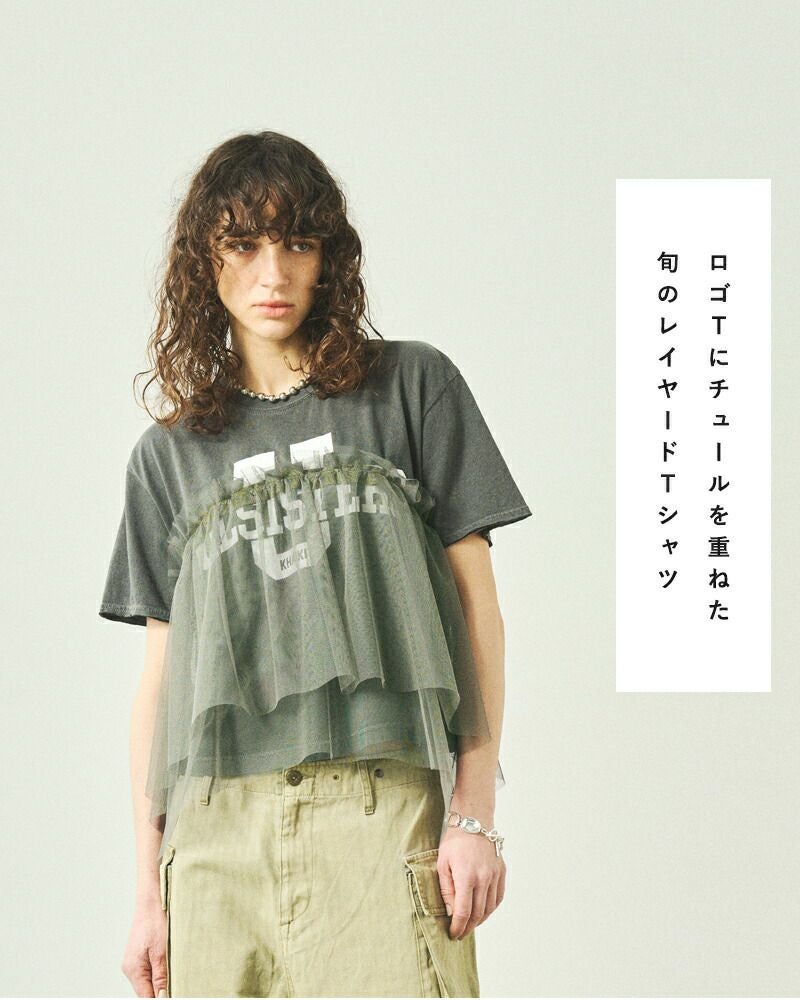 他の画像を見る ヴィンテージ感のあるプリントTシャツとチュール使いのコントラストが特徴的なリメイクTシャツ 【50%OFF】kha:ki カーキ コットン天竺 ピグメントダイ リメイク レイヤード Tシャツ “REMAKE LAYRED TEE” mil25scs3455-ms レディース ¥ 17,930 ¥ 8,965 税込 SALE SOLD OUT カートに入れる お気に入りに登録する