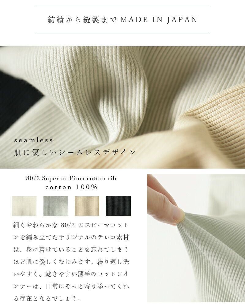 me.(ミードット)より、スーピマコットンリブテレコインナーパンツのご紹介です。シームレスならではの着心地を感じで頂きやすいパンツは股上が深く、ウエスト部分にゴムを使用せず、優しいフィット感。素材には、細く柔らかな80/2のスピーマコットンを編み立てたオリジナル素材を使用し、肌馴染みバツグン。日常にそっと寄り添ってくれる特別な存在となる1枚です。