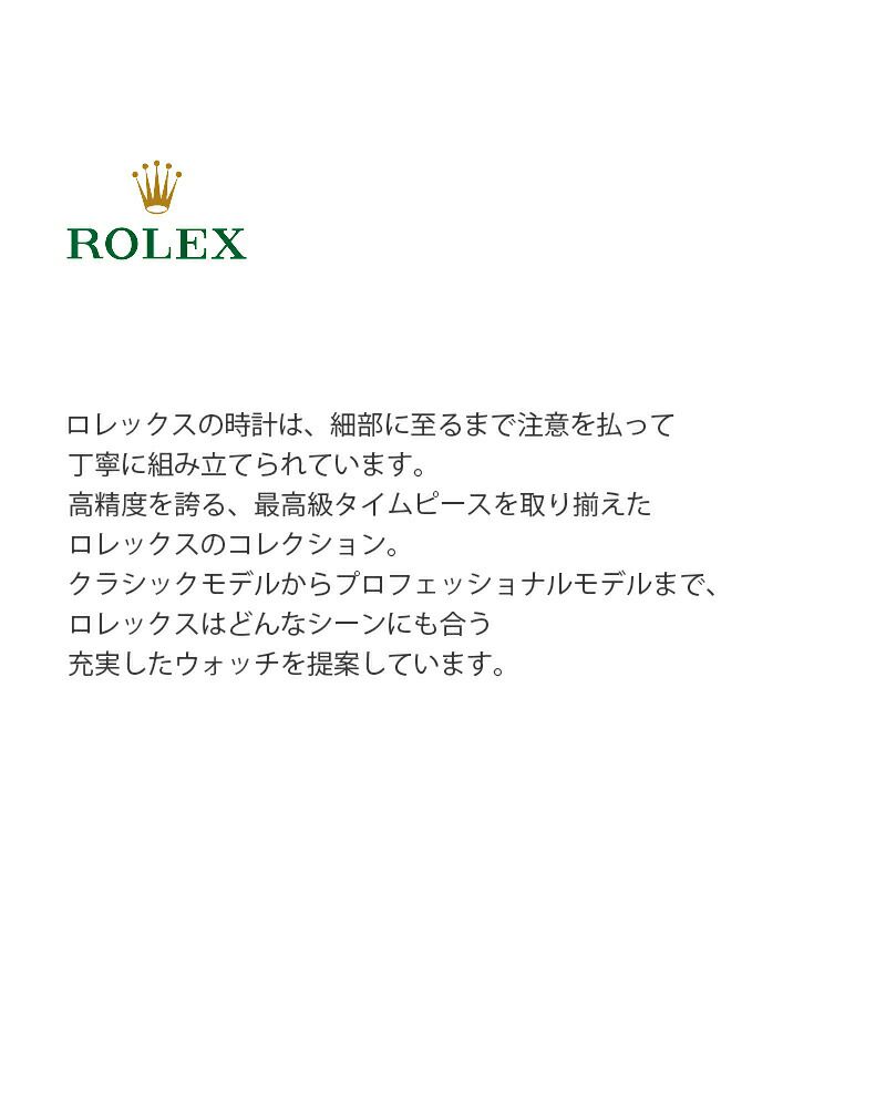 ロレックスの時計は、細部に至るまで注意を払って 丁寧に組み立てられています。 高精度を誇る、最高級タイムピースを取り揃えた ロレックスのコレクション。 クラシックモデルからプロフェッショナルモデルまで、 ロレックスはどんなシーンにも合う 充実したウォッチを提案しています。
