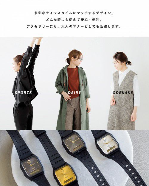 他の画像を見る 生活防水 と アラーム ストップウォッチ 等が付いた アナログ デジタル デュアルタイム 腕時計【送料無料】【再入荷】 CASIO カシオ アナデジ デュアルタイム 腕時計 aq-230a-fn レディース ¥ 8,800 ¥ 8,800 税込 SOLD OUT 詳細を見る お気に入りに登録する