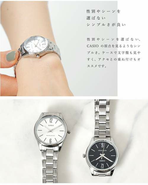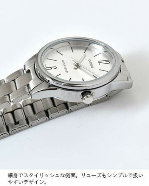 CASIO(カシオ)より、スタンダードステンレススチールベルトアナログ腕時計のご紹介です。サークルフレームのシンプルでクラシックな雰囲気のウォッチ。スタンダードなデザインが気軽にコーデに取り入れられ、程よい大きさで負担にならず、日常生活防水でデイリーに大活躍してくれそう。ブレスレットとも相性◎なので重ねつけにもピッタリ♪手に入れやすいお手頃さも嬉しいポイントです。