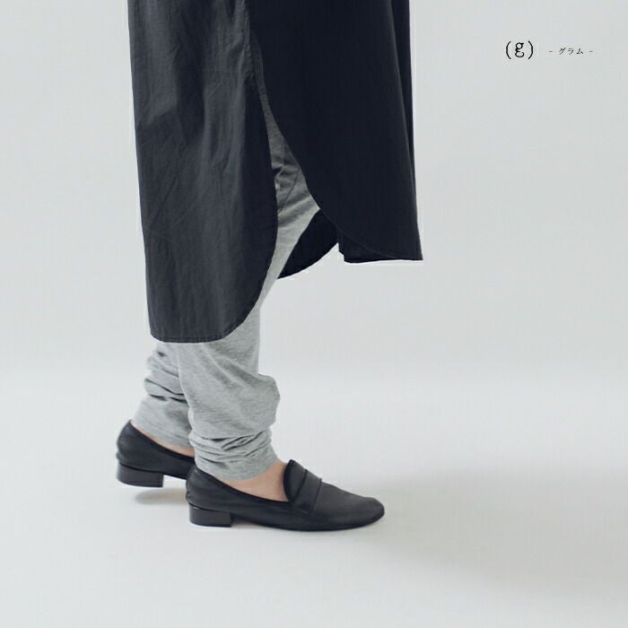 (g)(グラム)よりコットン シングル ジャージ ルーズ レギンスのご紹介です。コットン100%で仕立てたジャージ素材のルーズレギンスです。薄手ながらふんわり柔らかく、肌に心地よくフィットする伸縮性が魅力。丈は少し長めのデザインで、裾をクシュっとさせて着るのがポイントです。スカートやワンピースとの重ね着はもちろん、寒い日には靴下を合わせてもキュートな仕上がりに。シンプルながらもコーディネートのアクセントになる一本です。膨らみを抑えたすっきりとしたシルエットなので、レイヤードしてももたつきません。いつものコーデに加えるだけで、季節を問わず活躍する万能アイテムです。