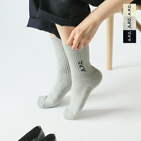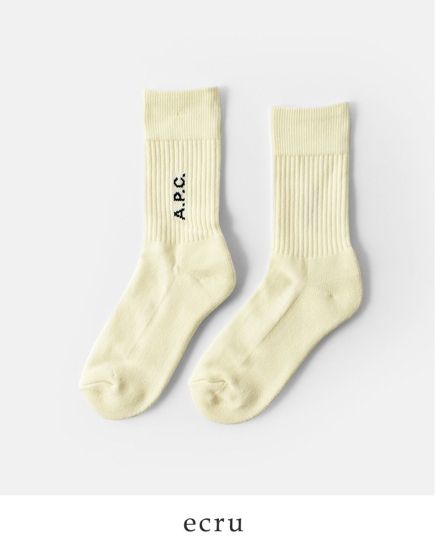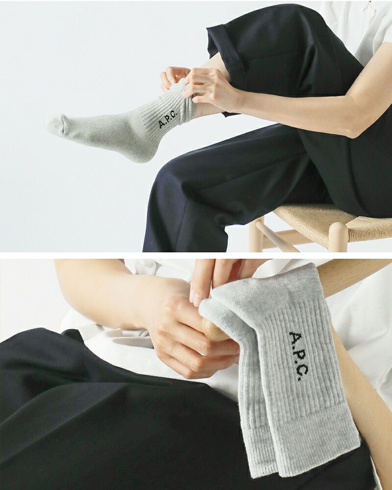 A.P.C.(アー・ペー・セー)よりロゴ リブ クルーソックス “CHAUSETTE WILL FEMME”のご紹介です。程よい肉感で心地よい履き心地、さりげないアクセントを足元にプラスするクルーソックス。しっかりとストレッチが効いており、フィット感も抜群。クッション性を高める為に足底はパイル加工を施しています。シンプルなデザインで、スニーカーともドレスシューズとも合わせやすい、一つ持っていると活躍すること間違いなしのアイテムです。
