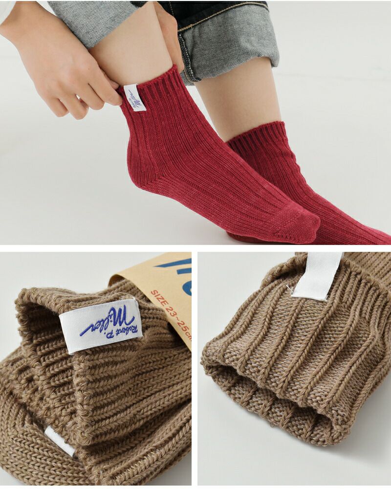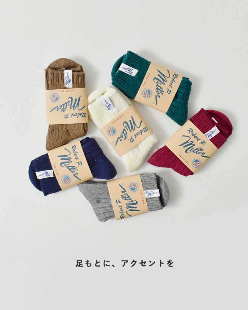 MILLER(ミラーより、)1P クルー ソックスのご紹介です。コットン混の肌触りの良さが魅力のシンプルなクルー丈ソックス。シューズとのバランスがとりやすい、程良い肉感で履き心地◎。存在感もあり、コーディネートのワンポイントにもなってくれます。温かみのあるカラーで秋冬にピッタリのアイテムです。