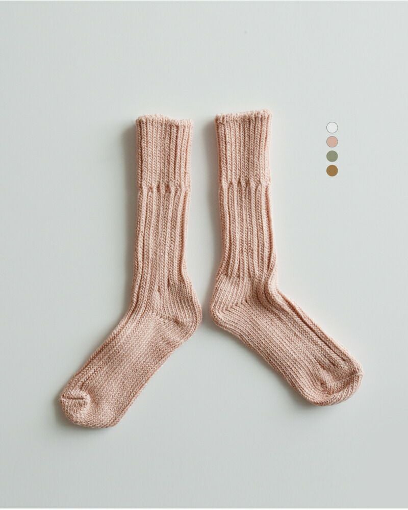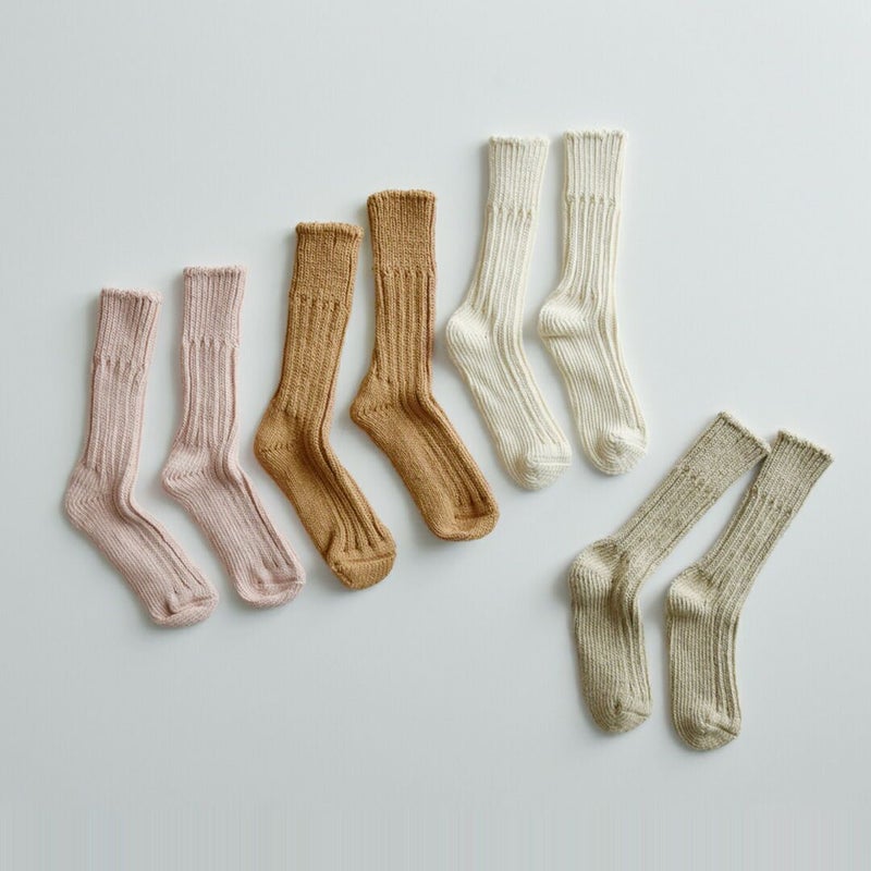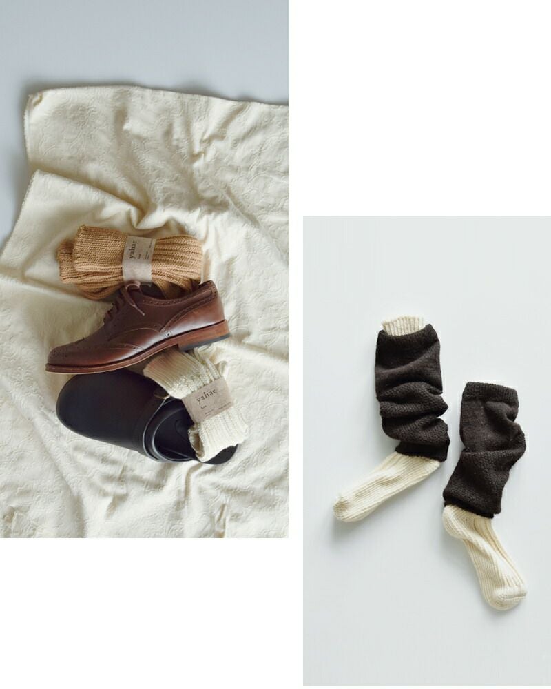 yahae kan(ヤハエカン)より、オーガニック コットン ローゲージ ソックスのご紹介です。イギリスベントレー社の古いヴィンテージマシーンで編み立てた、昔ながらの風合いのあるローゲージソックス。素朴で優しい色合いの4色展開が秋冬コーデにしっくりと馴染み、シーズンムードのある着こなしに。