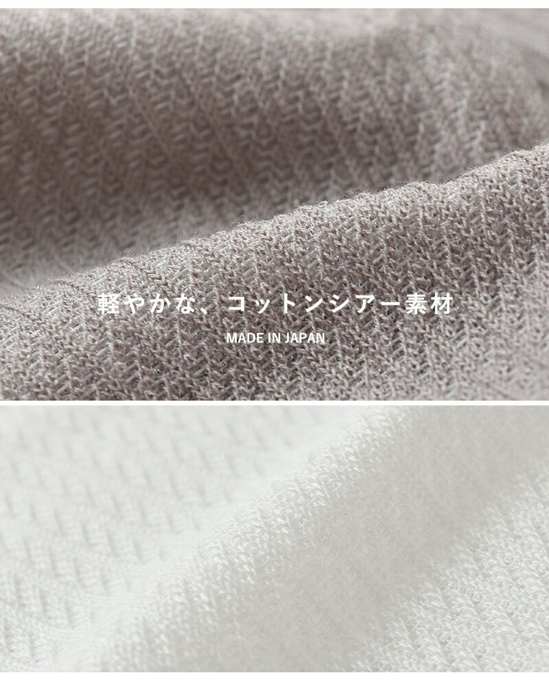 サラリとした肌触りが心地よい、コットンシアー素材を使用。上品な透け感としなやかな光沢が、さりげない高級感を演出します。