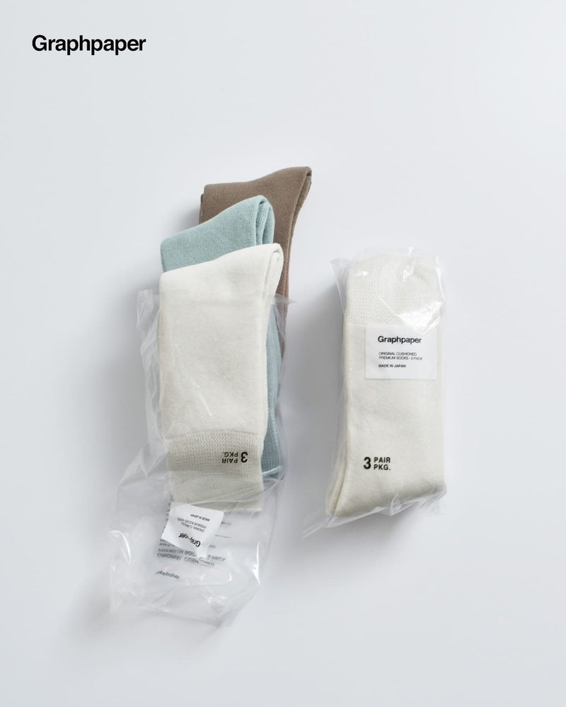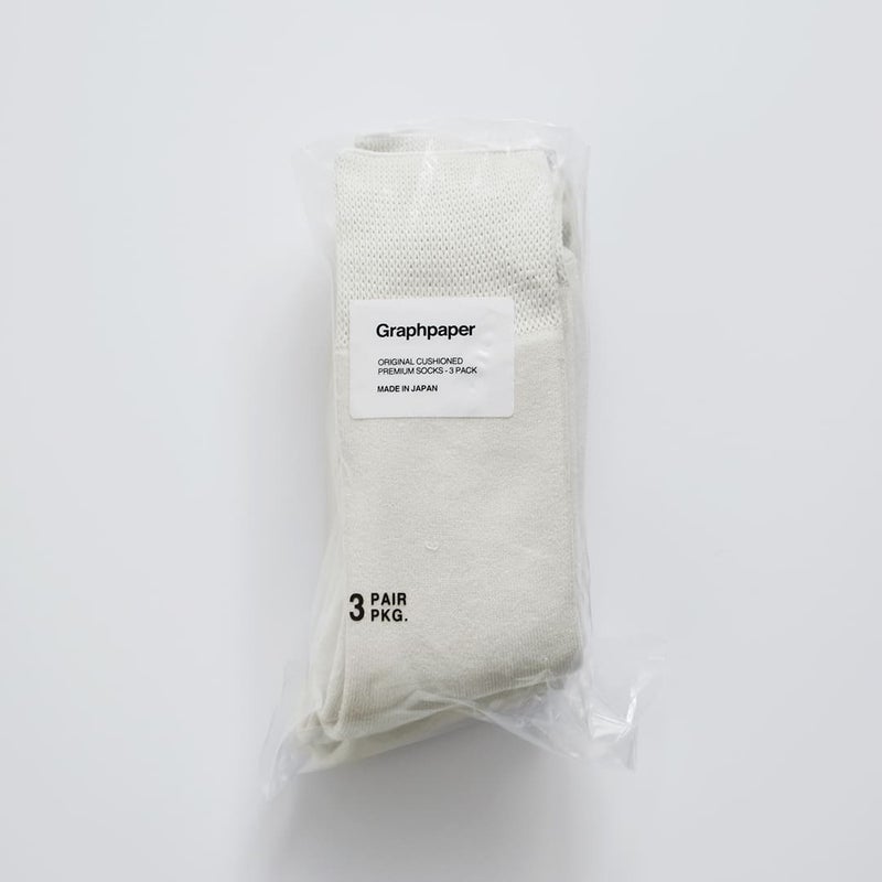 graphpaper(グラフペーパー)より、3パック ソックスをご紹介します。柔らかく包み込み、吸い付くような感覚のGraphpaperオリジナル3パックソックス。コットンをベースに高い吸汗性を発揮するドイツ生まれの特殊ファイバーをブレンドする事で弾力性のある風合いに仕上げています。フィット感を残しつつも締め付けが少なく、薄く通気性にも優れた拘りの仕様。抗菌防臭加工が付与されており、いつまでも清潔に保つことが出来ます。3足セットのパックで、デイリーに活躍してくれます※トープ、スモークブルーは今シーズンのコレクションカラーです。