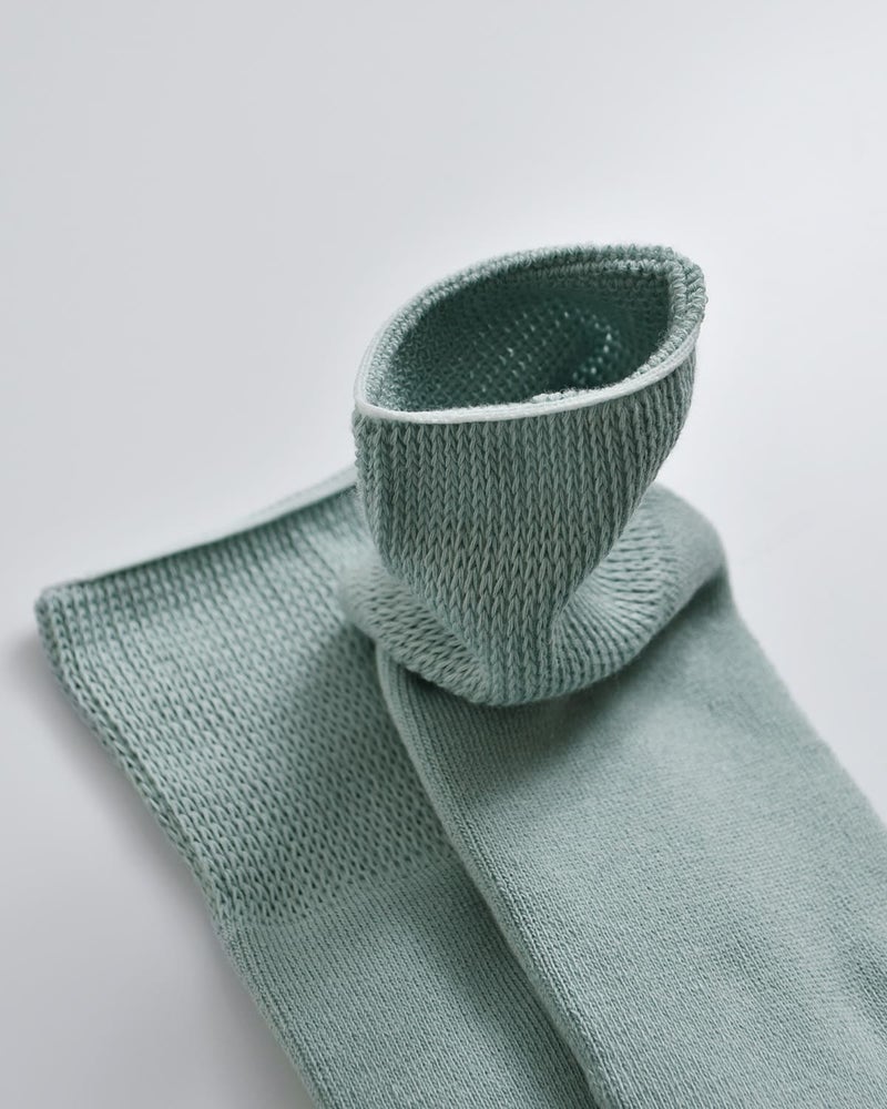 履き口には特殊な編機でつくられたシングルリブを採用。