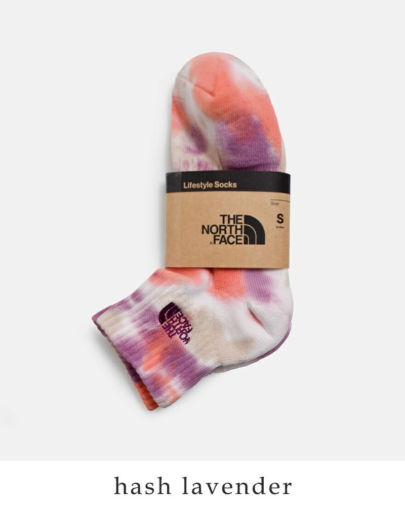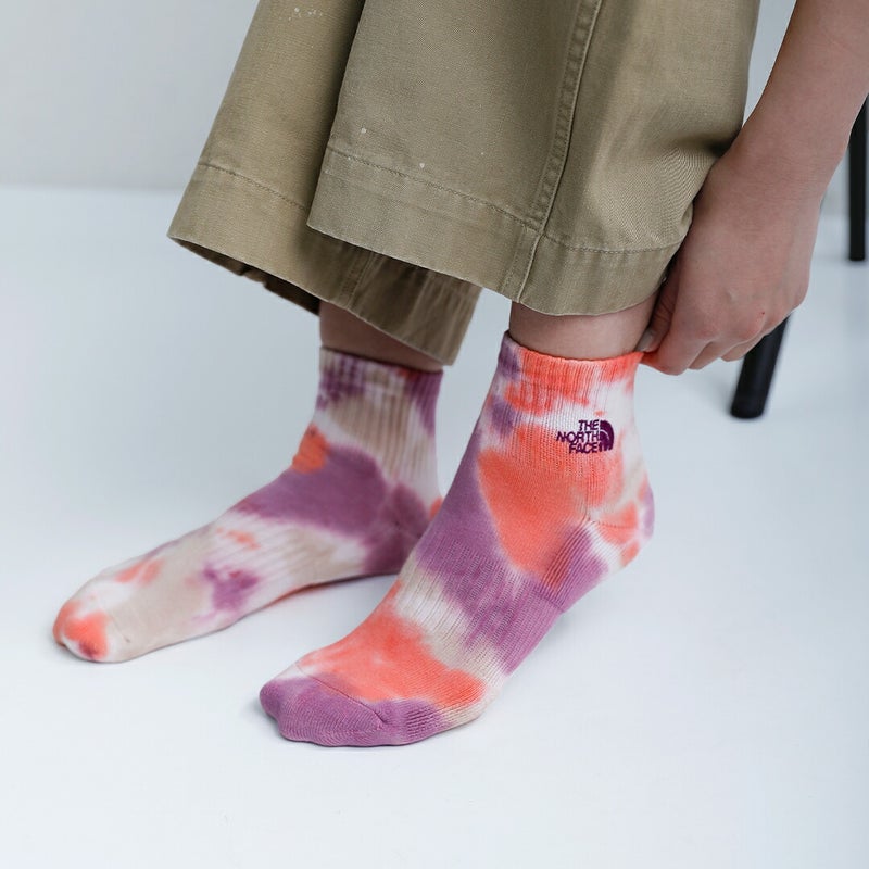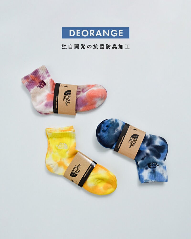 THE NORTH FACE(ノースフェイス)より、タイダイ アンクルソックス Tie Dye Ankleのご紹介です。オーガニックコットンを使用した、やさしい履き心地のソックス。ナチュラルな風合いと一点ごとに異なる表情が魅力です。シューズとの干渉が気になるつま先とかかと部には補強糸で強度を向上。足底をのパイル編みにより、足当たりが良く快適な履き心地を実現。アーチサポート構造によりフィット感を高め、長時間の着用でも快適さをキープ。独自開発の抗菌防臭加工「DEORANGE」を施し、繊維上の菌の増殖を抑え、気になるにおいの発生も軽減します。