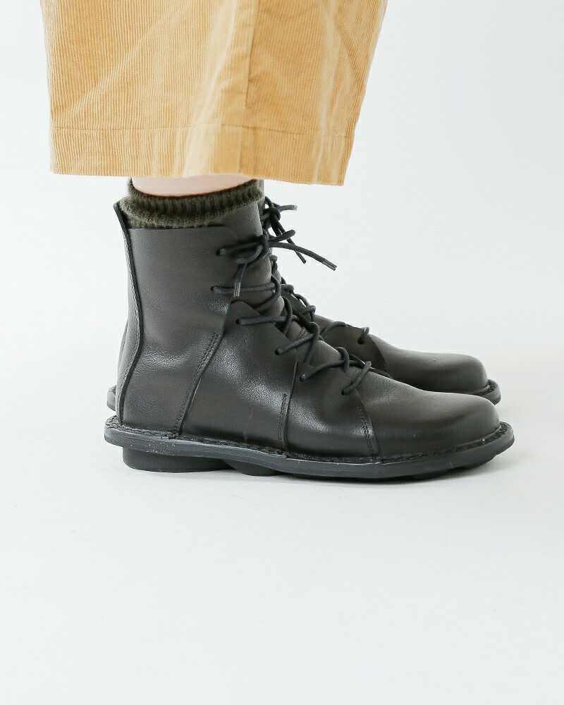 ドイツ生まれのtrippen。安定感のあるフォームで、履き込めば履き込むほど深い味わいを見せ、足に馴染んでくれます。ソールにはしっかりゴムがはいっていてクッション性に優れ長時間履いていても疲れにくいのも嬉しいですね♪程よいボリュームがあり、一点一点、丁寧に職人の手により作られ、表情豊かな一足に仕上がっています。