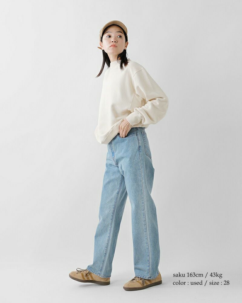 12.5ozのデニム生地は、ストレート糸を使用しているのでクセがなく穿きやすいのが特徴。90年代のジーンズよりインスパイアし、シェービングやヒゲ加工をしていない雰囲気にしています。程よい厚みがあり、ややくったりした肌なじみの良い履き心地。