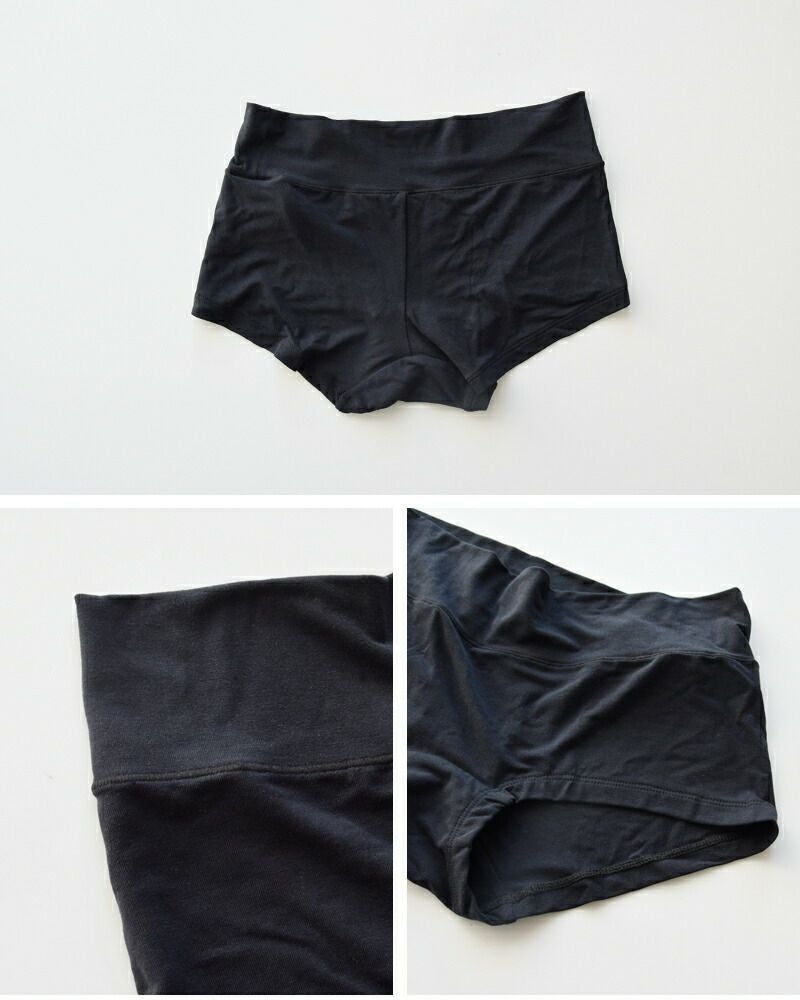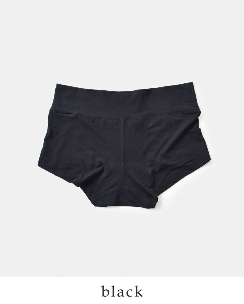 ヒップ全体を包み込むことで、ずり上がりにくく、お尻・ももの付け根のくいこみを軽減、身体に優しくフィットし、アンダーラインがひびきにくい設計。