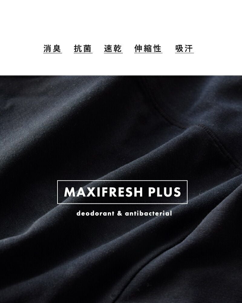 汗臭と加齢臭を消臭する「マキシフレッシュプラス」を使用。汗のにおい成分であるアンモニアや酢酸などをスッキリ消臭してくれます。その消臭機能は洗濯をすることで復元し、長期間持続します。