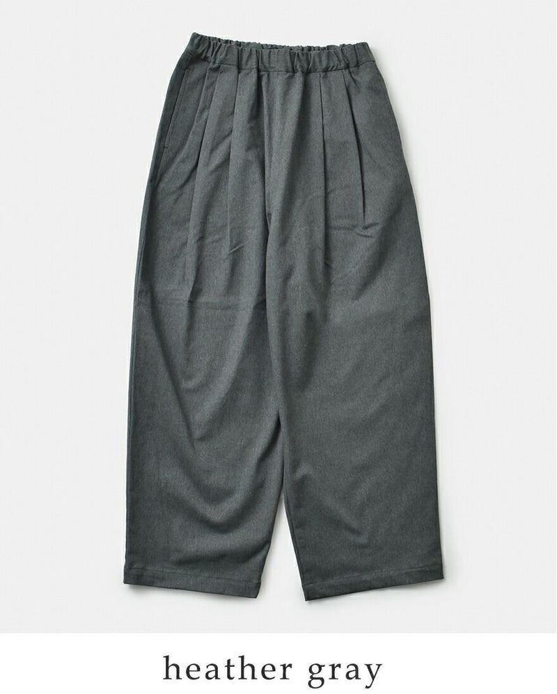 TRAVAIL MANUEL(トラバイユマニュアル)よりコットンコンパクトチノストレッチバームパンツが届きました。穿きやすいゴムウエストと美しいギャザー、パンツシルエットを際立たせる印象的な2タックでスタイリングに取り入れやすいデザインになっています。