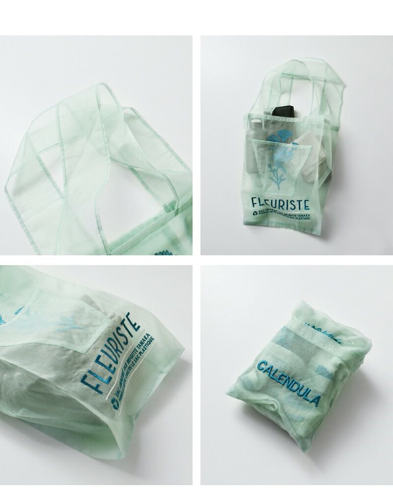 BRIGITTE TANAKA(ブリジットタナカ)より刺繍 トートバッグ “FLEURISTE”のご紹介です。透け感のある繊細なナイロン生地にカレンデュラの刺繍が可愛いトートバッグ。“FLEURISTE”は「花屋」を意味する通り、活き活きとしたお花の刺繍が施されています。フロントは本物のお花を差し込める仕様。これはお花をお買い物するとどうしても手が塞がってしまうので、その悩みを解消するために生まれたデザインです。内ポケットに収納も可能なので、バッグの中にコンパクトに持ち運びも可能。便利で可愛いトートバッグで、お買い物がもっと楽しくなりますね。