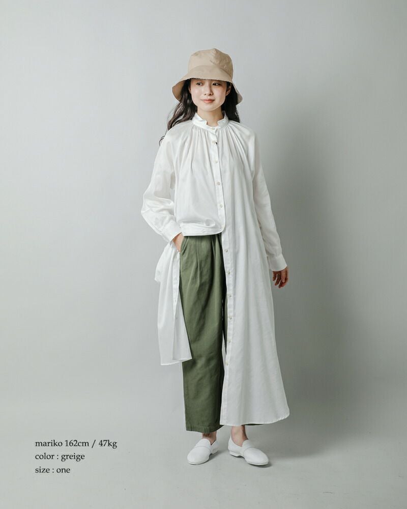 サラッと爽やかな生地が心地いい、ソフトで軽い着用感のシンプルハット。程よい長さのプリムには繊細なステッチが施され、カジュアルすぎず、上品な雰囲気も併せもっています。
