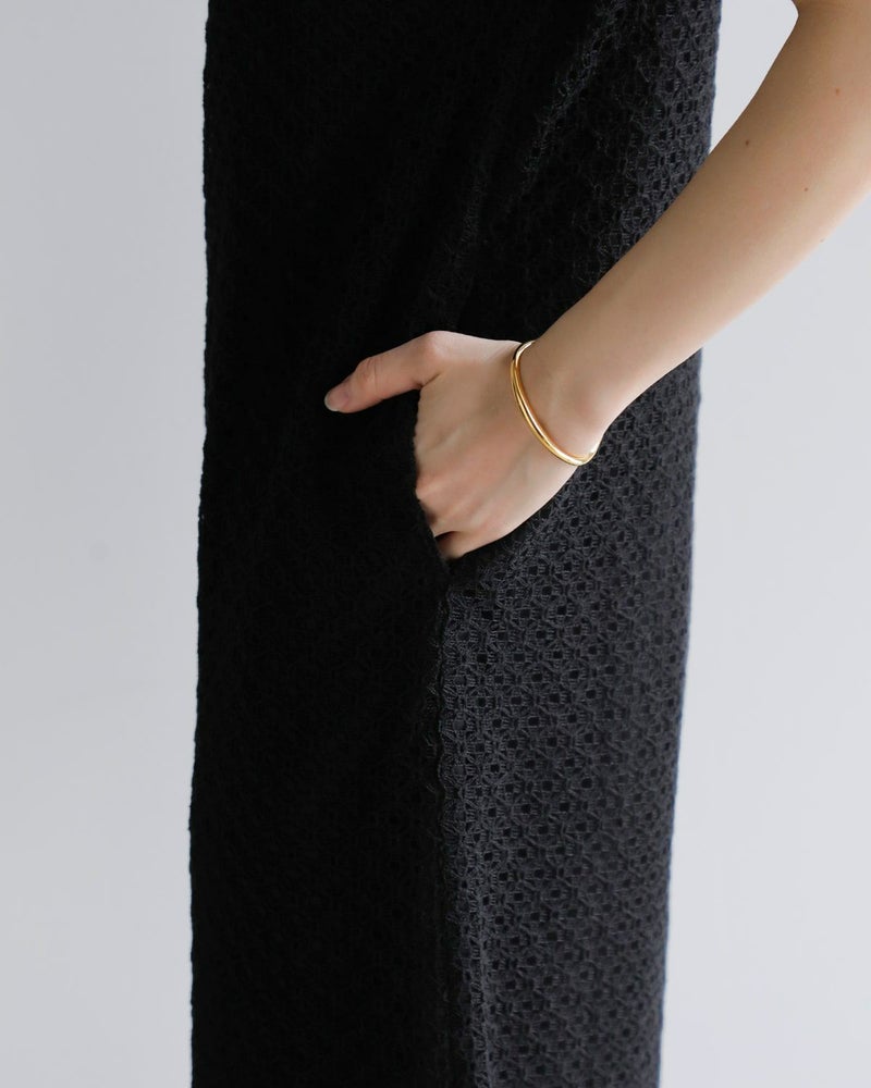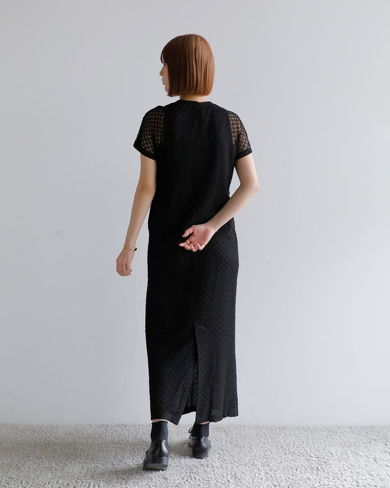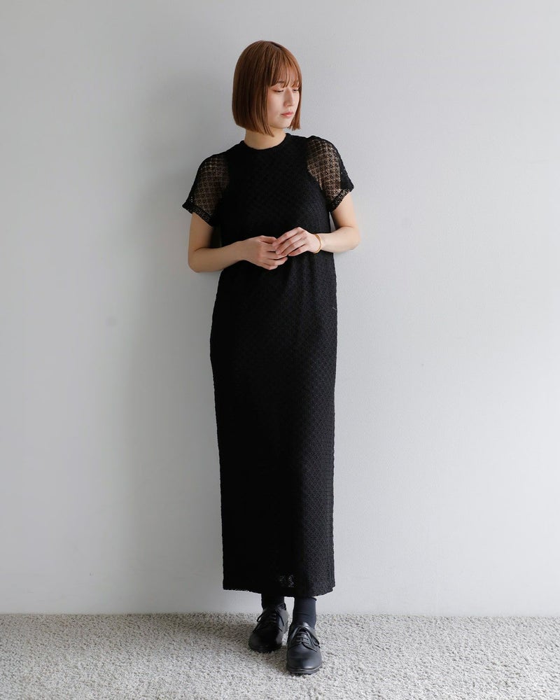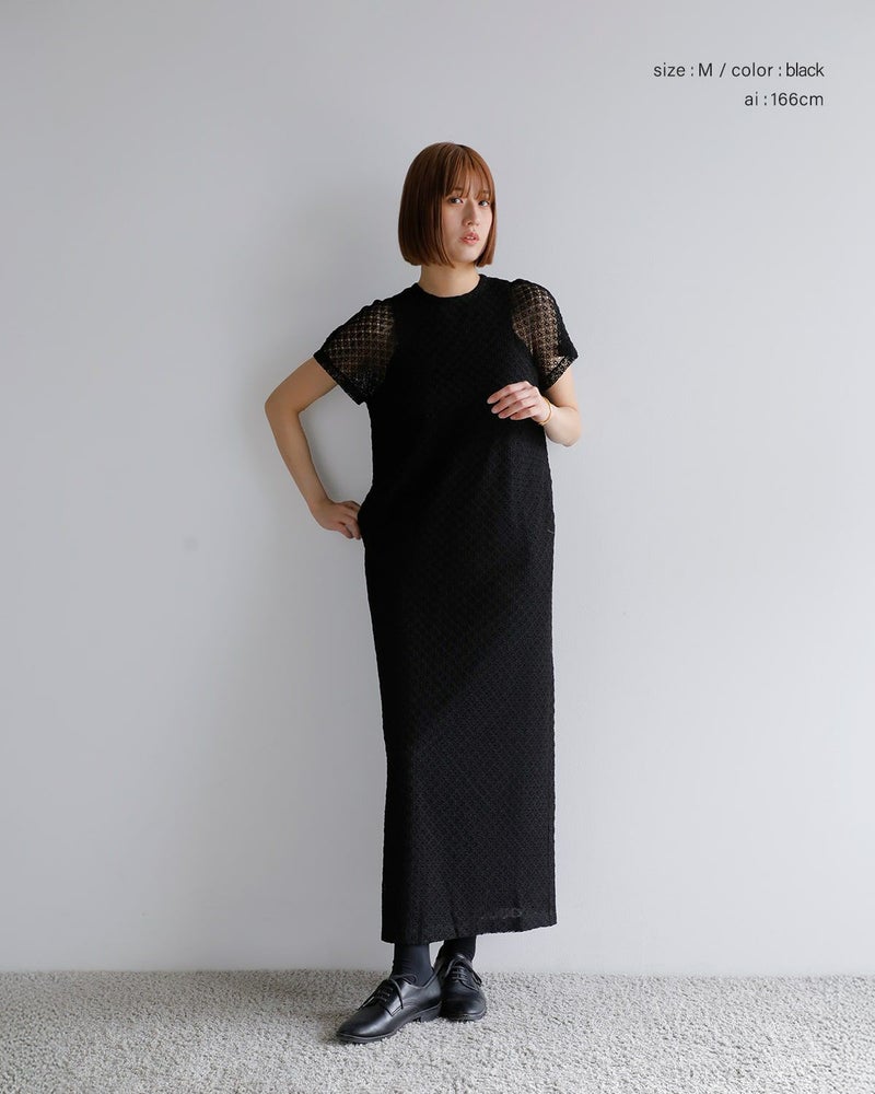 シンプルなIラインシルエットながら、袖やボディ全体に施されたレースが立体的で美しいデザインを引き立てます。特別なシーンや日常の装いに、華やかさをプラスしてくれるアイテムです。特別なシーンにはもちろん、日常のコーディネートにも華やかさをプラスしてくれます。