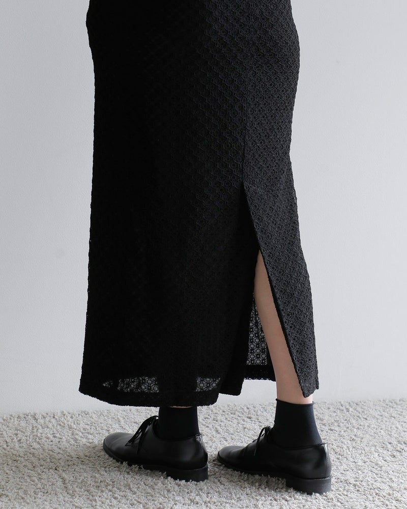 繊細なレースが、装いに凛とした美しさを添える。