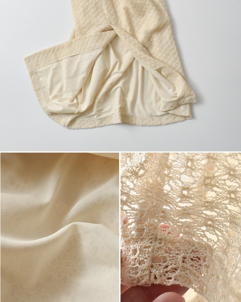 繊細でありながら、しなやかさと軽さを持ち合わせ、柔らかな肌触りが特徴のラッセルレースを使用。通気性が高く、蒸れにくいため、長時間の着用でも快適に過ごせます。見た目の美しさだけでなく、機能性も兼ね備えた上質な素材です。裏地はさらりとしており、インナーとの滑りも良く快適に着用できます。