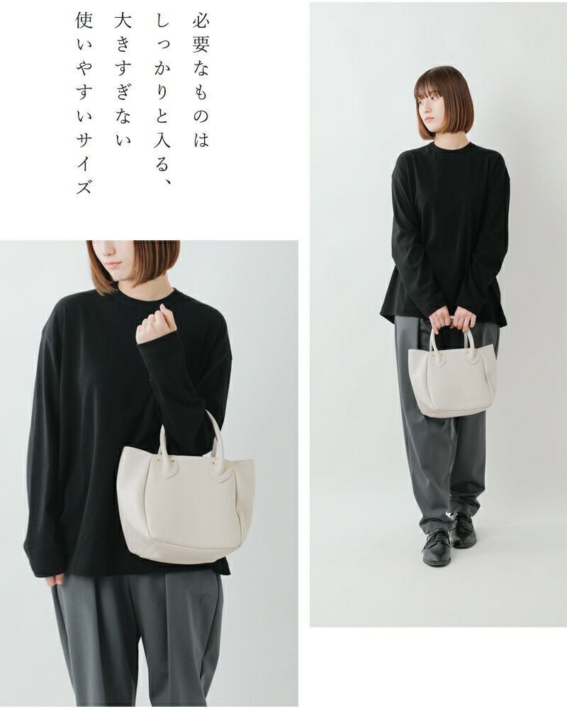 ●ころんとしたスクエアフォルムが可愛いコンパクトなサイズ感のトートバッグ。