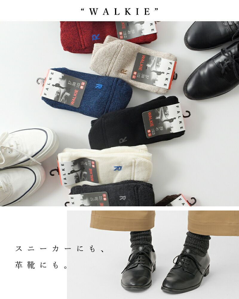 FALKE(ファルケ)よりウールミックス ウォーキング ソックス “WALKIE”のご紹介です。人間工学に基づいた機能性を重視したFALKE。そんなFALKEがウォーキング用にデザインしたソックスです。程よいフィット感と履き心地の良さ。ミックス糸で編まれた柔らかな生地は足を優しく包み込んでくれ、靴ずれを防いでくれます。一度履いたら手放せなくなる、リピーター続出の大人気アイテムです。