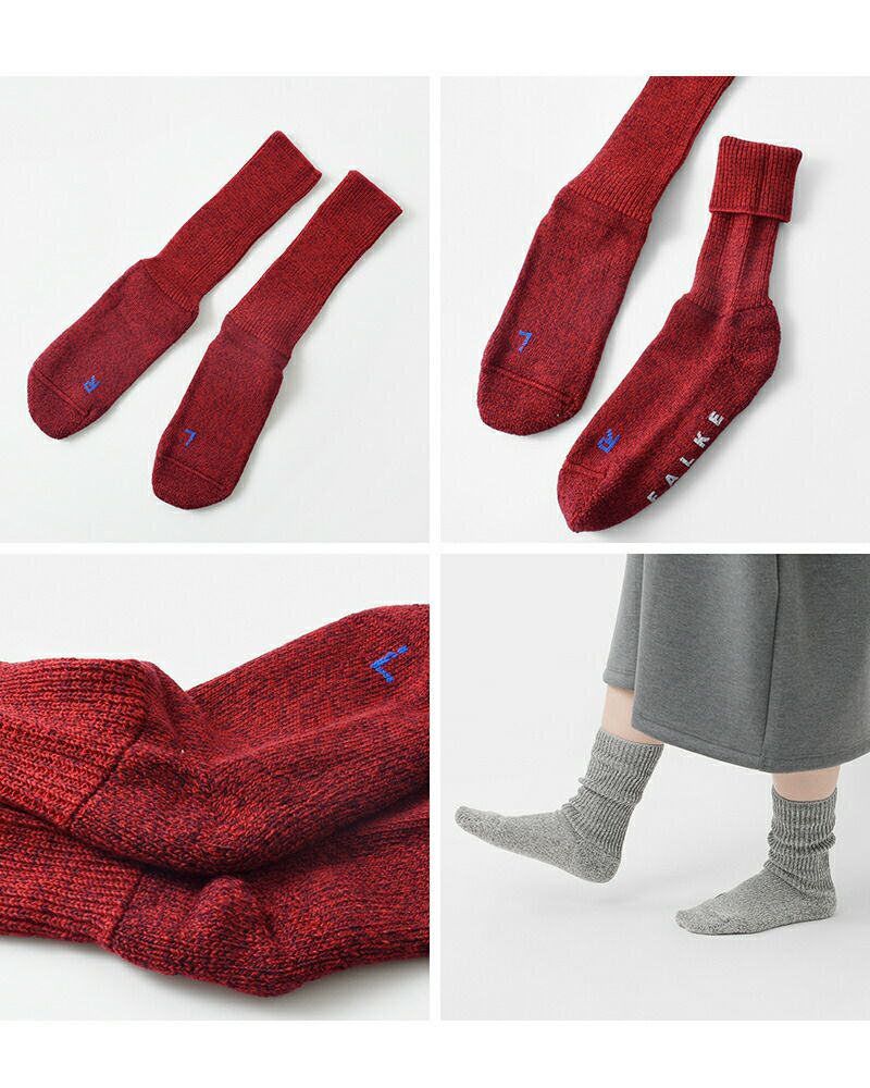 ウール混で保温性が高く、太めのミックス糸で編まれたざっくり感が魅力。柔らかくて肉厚で履き心地はやさしく。デイリーにはもちろん、ルームソックスとしてもおすすめなソックスです。