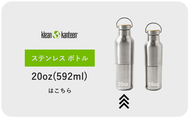 klean kanteen(クリーンカンティーン)より、ライズクラシック バンブーキャップ ステンレス ボトル 473mlのご紹介です。塗料やプラスチック、コーティングを一切使用せず、本質的な素材のみで構成されたステンレス製のボトル。飲み物の味や香りが残りにくく移りにくいので、風味を損なわずにドリンクの持ち運びが可能です。スタイル、機能性、サステナビリティを兼ね備えた、使うたびに気分が上がる。持ち歩くことで、ちょっといい選択ができる、そんなボトルです。