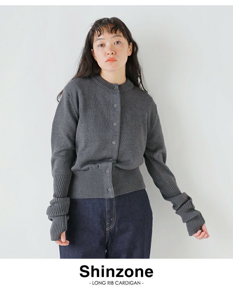 Shinzone(シンゾーン)より、ウール混 ロングスリーブ リブ ニット カーディガン “LONG RIB CARDIGAN”のご紹介です。ロンググローブを手にはめているかのような、とても長い袖のリブが特徴的なニットカーディガン。コートやジャケットの袖からのぞかせても可愛いし、オーバーサイズなスウェットやシャツの中に合わせたレイヤードにも◎。シンプルなデザインながら、サッと羽織るだけでこなれ感が出るカーディガンです。