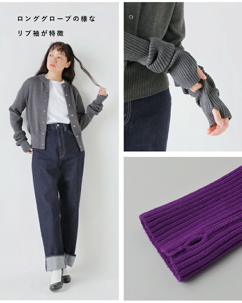 ウール混 ロングスリーブ リブ ニット カーディガン “LONG RIB CARDIGAN” 23amsni05