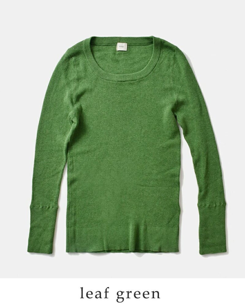 広めに開いたUネックがデコルテを美しく見せてくれます。細かなリブで縁取りしています。