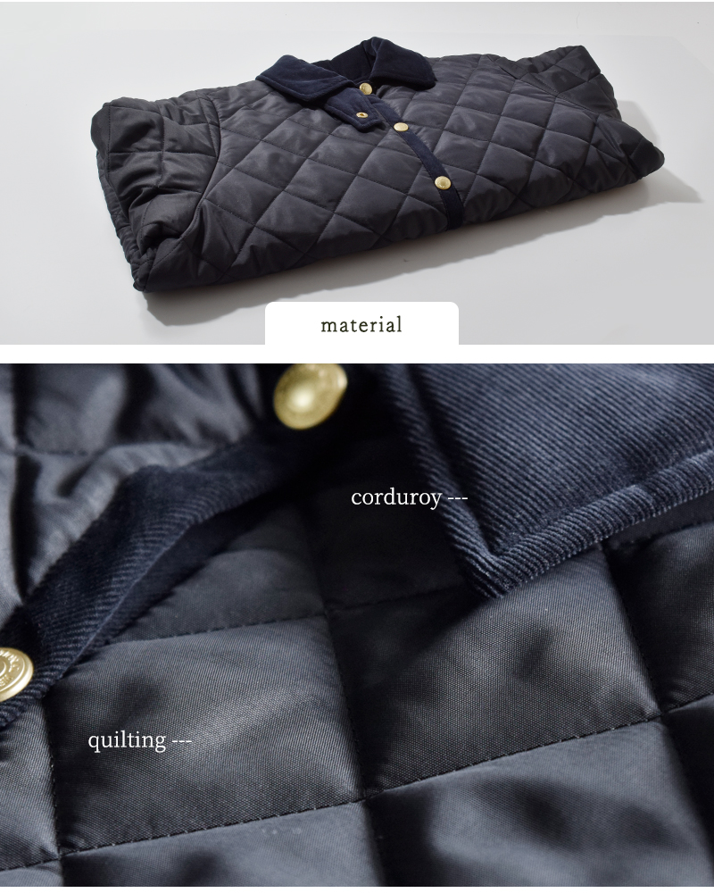 控えめな光沢感が上品なキルティング生地を使用。軽くて暖かく、撥水性も備えた高密度ポリエステルが使用され、機能性も充実しています。中綿入りで保温性も高く、秋から冬にかけて活躍してくれます。