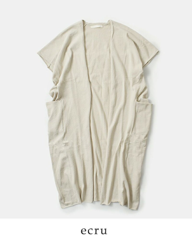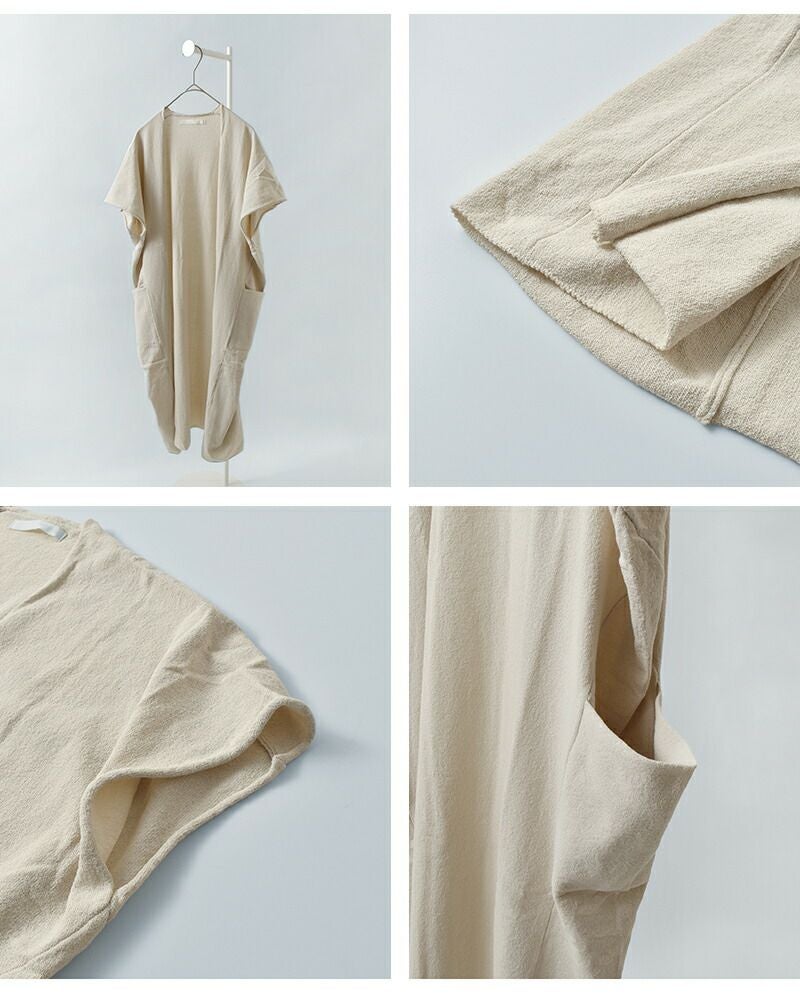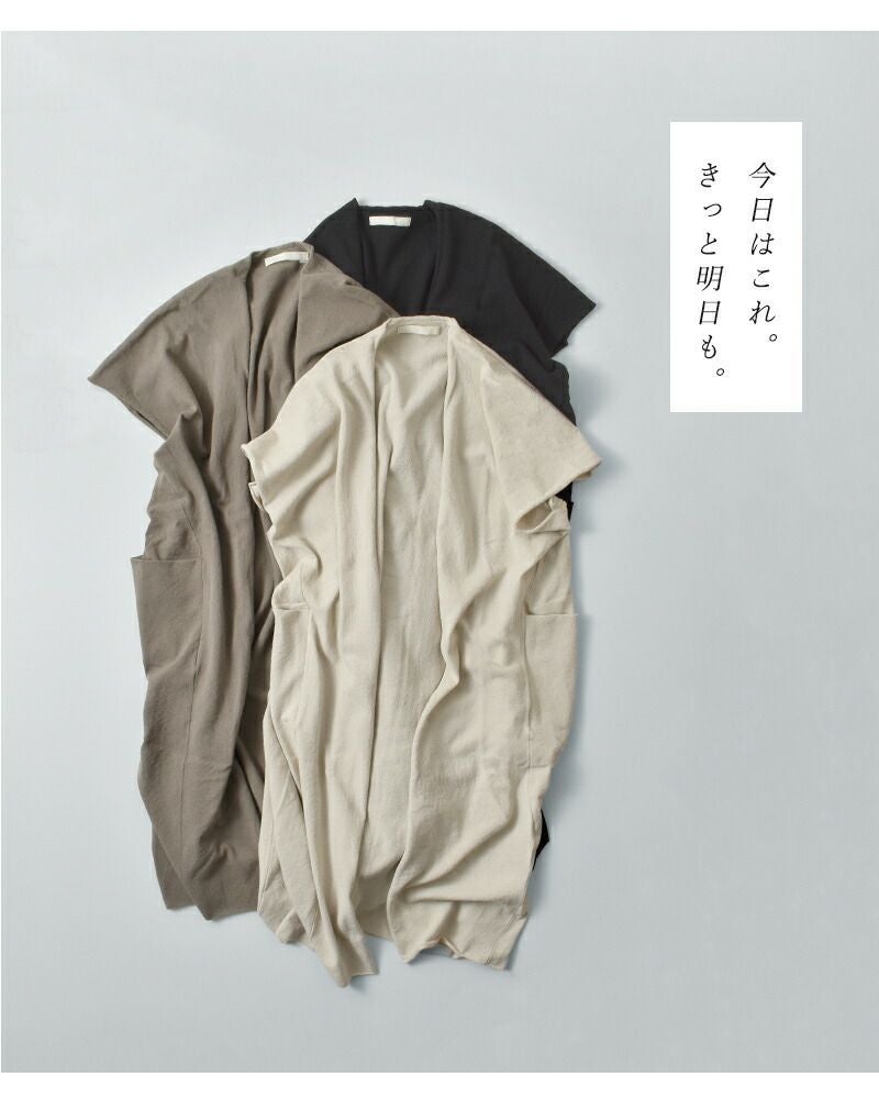 ボタンレスのシンプルで無駄のないデザインが魅力。季節やトレンドに左右されることなく、長く愛用できる一枚です。ナチュラルな素材感と落ち着いたカラーが、どんな装いにも自然に溶け込み、日常に寄り添います。