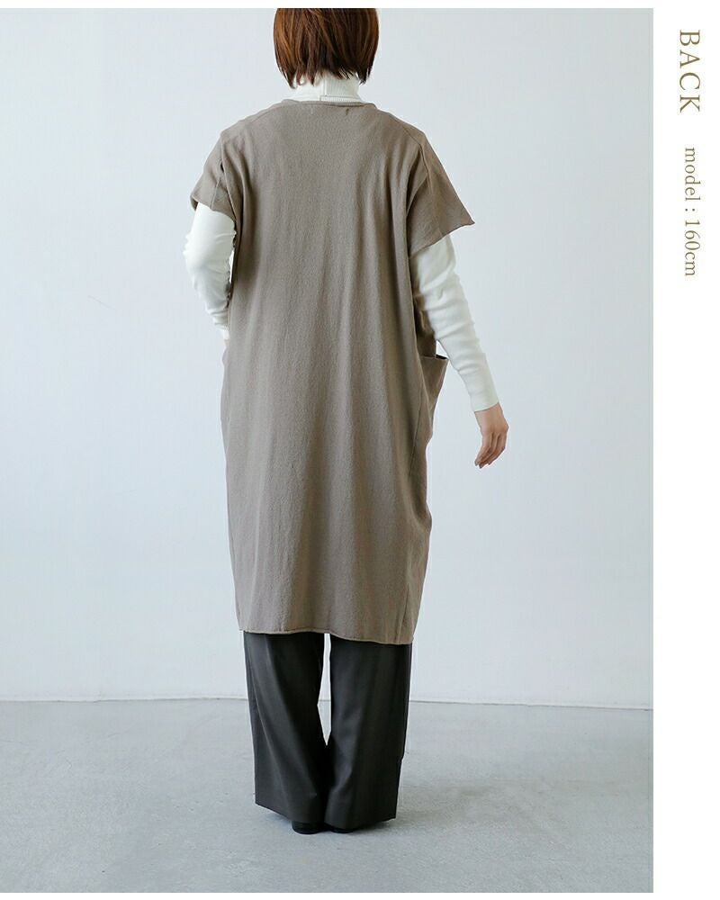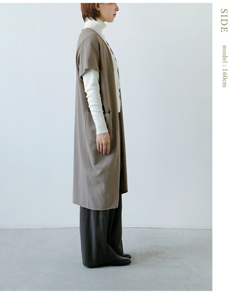 オーガニックコットン使用シンプルかつナチュラルなボタンレス前開きタイプのロングニットベスト evam eva エヴァムエヴァ コットン ロング ベスト e253k024-mt レディース