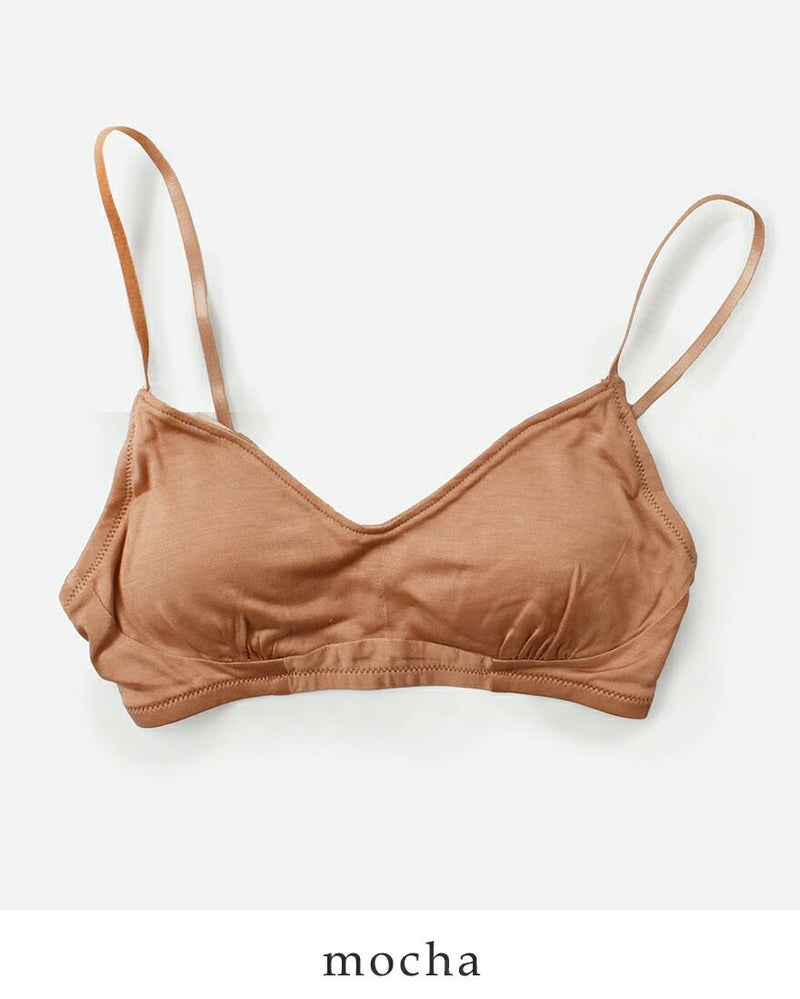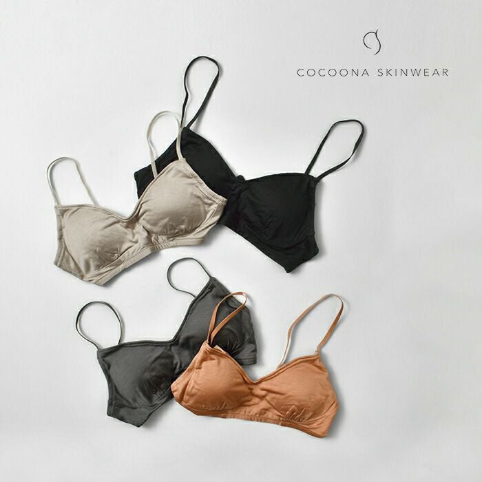 COCOONA SKINWEAR(コクーナスキンウェア)より、シルクノンワイヤーホールドブラジャーのご紹介です。化学繊維やワイヤーを使わずに、ほどよいホールド感に仕立てられたシルク100%のブラジャー。シルクは肌と同じ天然のたんぱく質でできているので、肌に触れても刺激がないのが特徴。ノンワイヤーの締めつけ感を排除した自然な着用感と、シルクの肌あたりの良さが実感できるストレスフリーなインナーです。バックホックは3段階、ストラップは無段階で長さ調節できるので、ご自身に合ったストレスフリーな着用感を探せます。