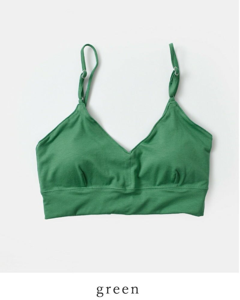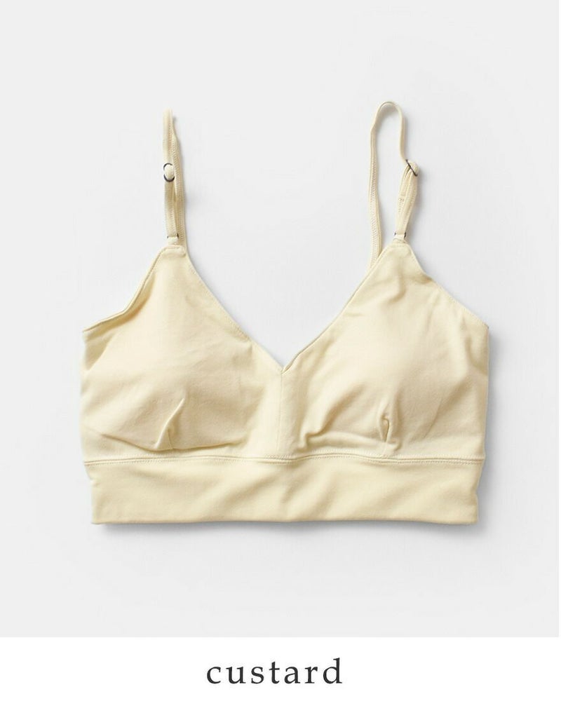 me.(ミードット)オーガニックより、コットン ストレッチ ホックレス ブラトップ をご紹介します。 オーガニックコットンのベア天に、天然成分由来の抗菌防臭加工(グレープフルーツ種子から抽出)が施された生地「citoratec」を使用しています。 ポリウレタンが入ることにより、ほどよくストレッチが効いて、包み込まれる安心感があるシリーズになりました。フィットネスやナイトブラにも使いやすいように、アンダー部分を少し長めに、アジャスターは調整しやすく前に設定しています。植物を思わせる爽やかなカラー展開で別売りのアンダーショーツと組み合わせもおすすめです◎