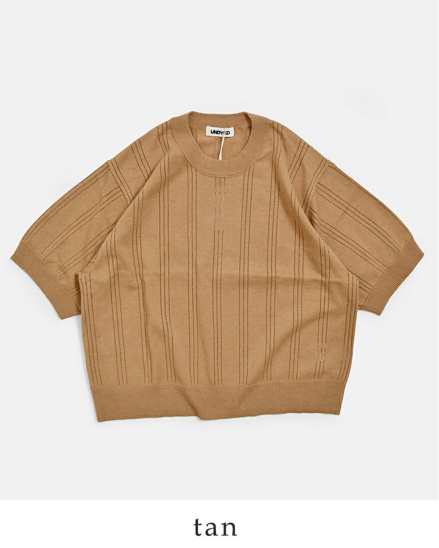 綿花本来の色柔らかさ環境肌優しい無染色ニットTシャツ繊細アイレットストライプ美しい透け感豊かな表情リラックスした着心地半袖Tシャツ 【クーポン対象】UNDYED アンダイド カラードオーガニックコットン アイレットストライプニット 半袖Tシャツ 26s372 レディース 2026ss新作 春夏