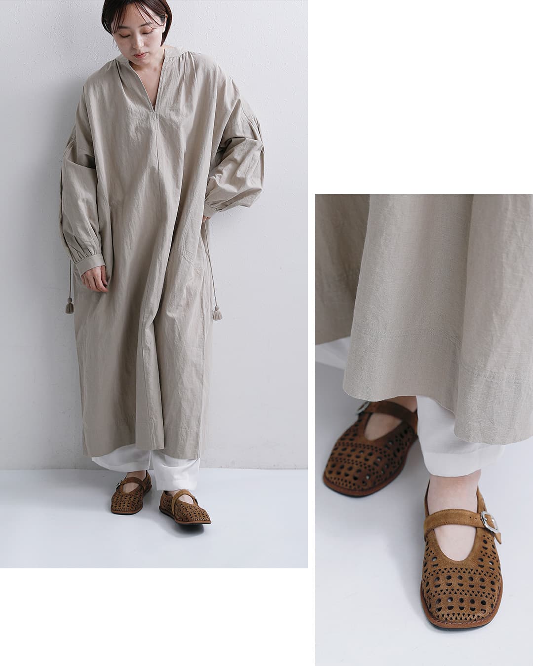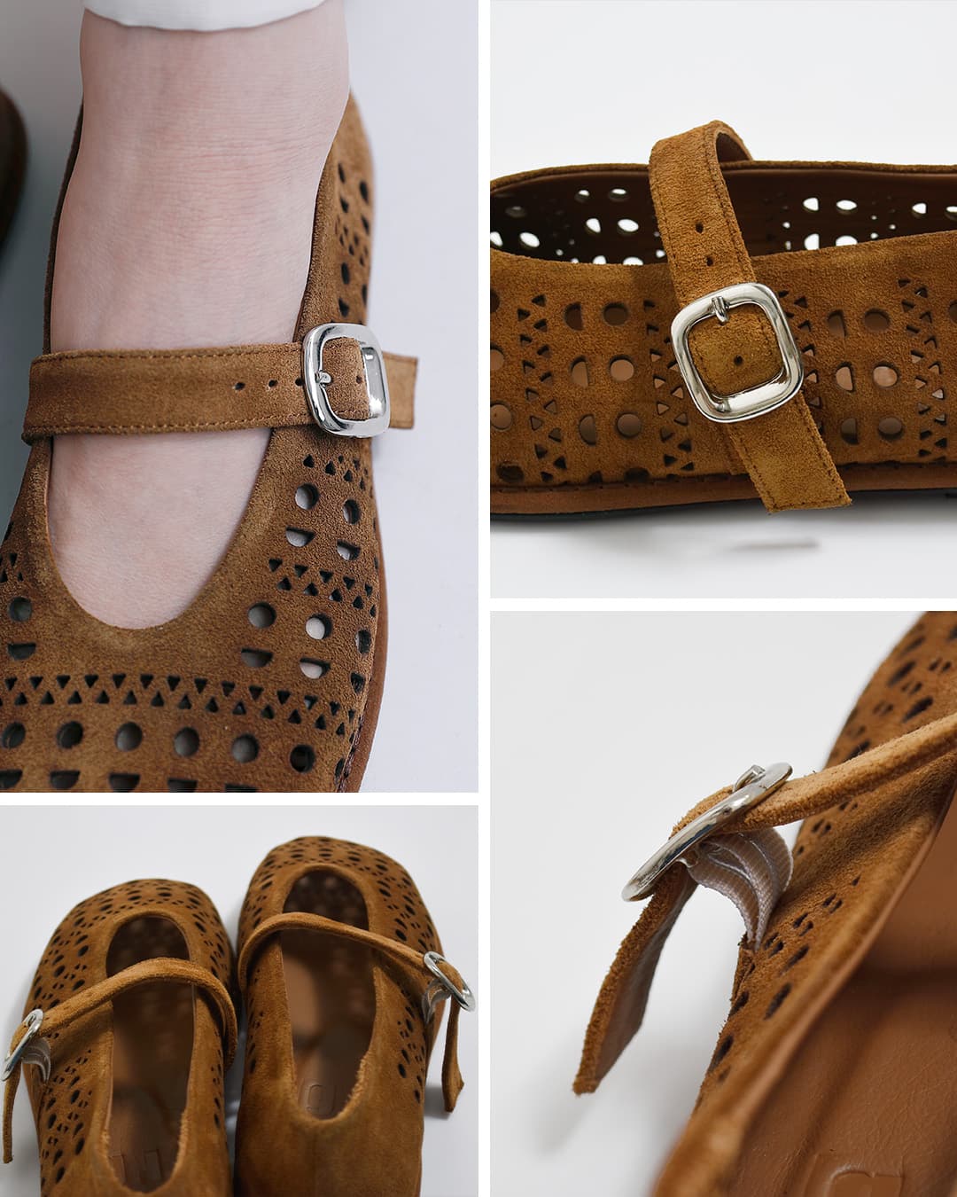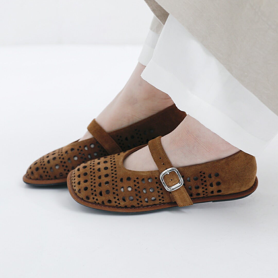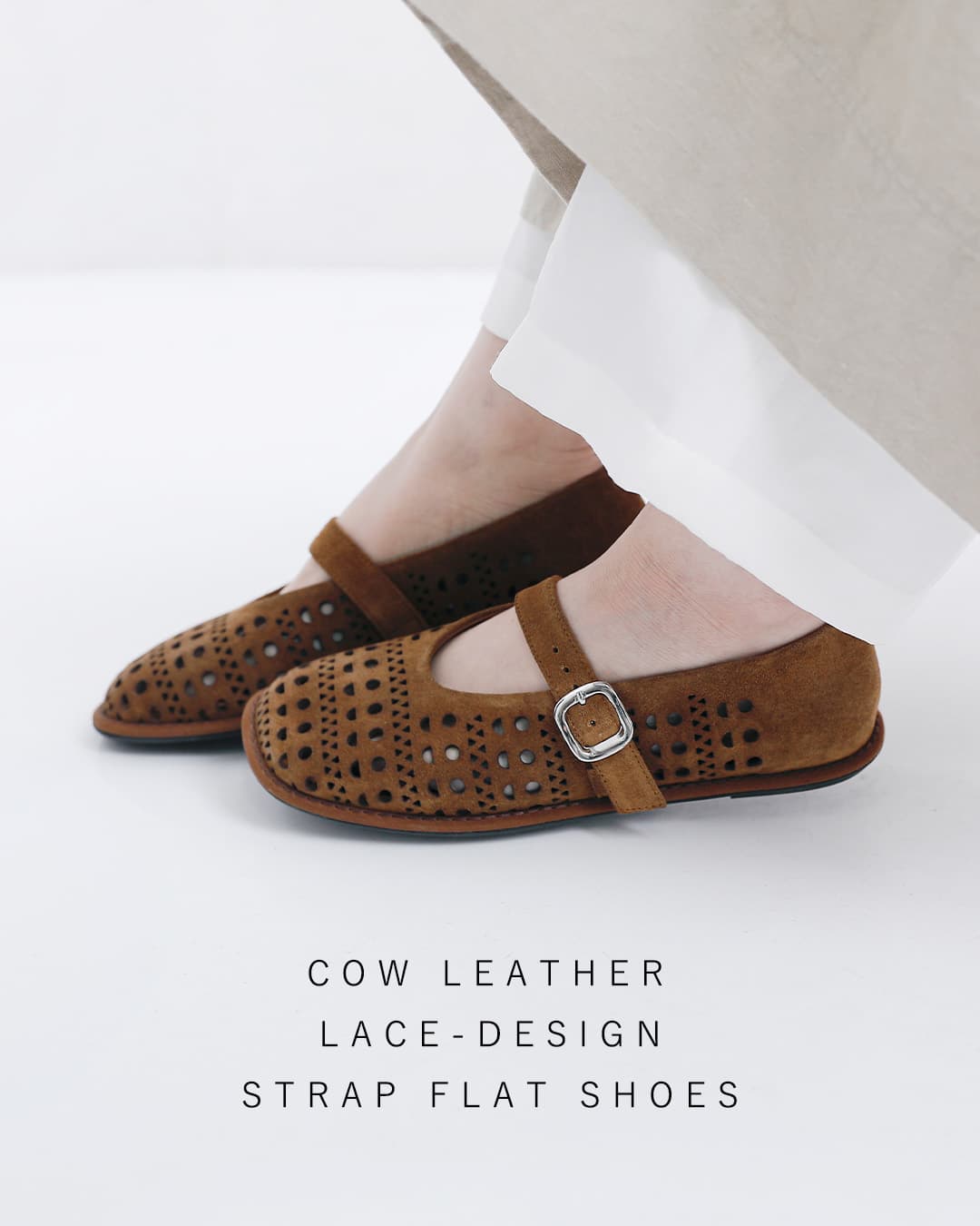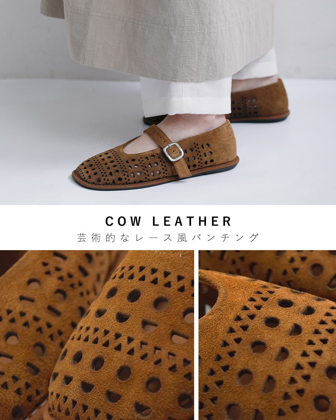 カウレザーパンチングレースのような美しさストラップフラットシューズトルコ製柔らかな履き心地ゴム底素肌ソックス透かして見せる抜け感 【クーポン対象】GRAIN グレイン カウレザー レースデザイン ストラップフラットシューズ 26ssgr009 レディース 2026ss新作 春夏【サイズ交換初回無料】