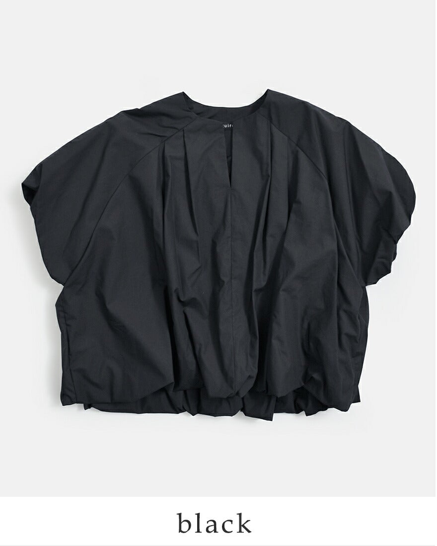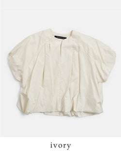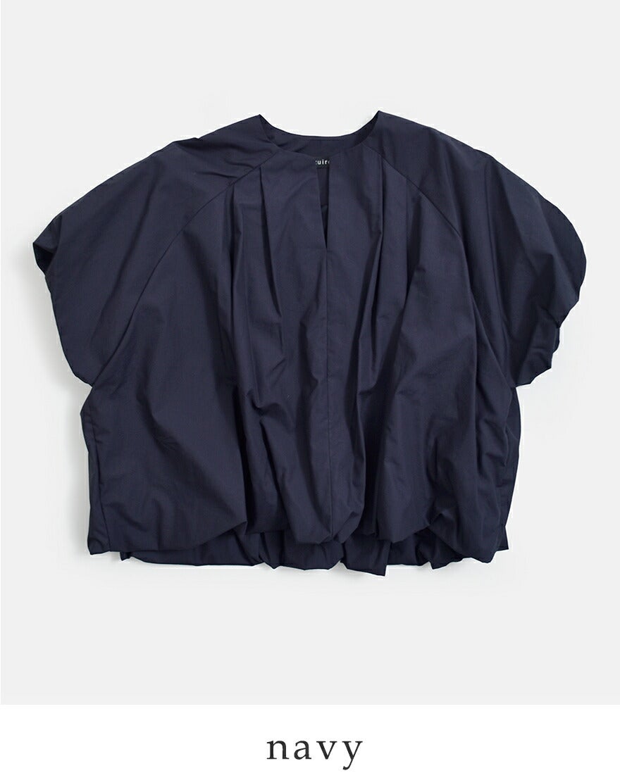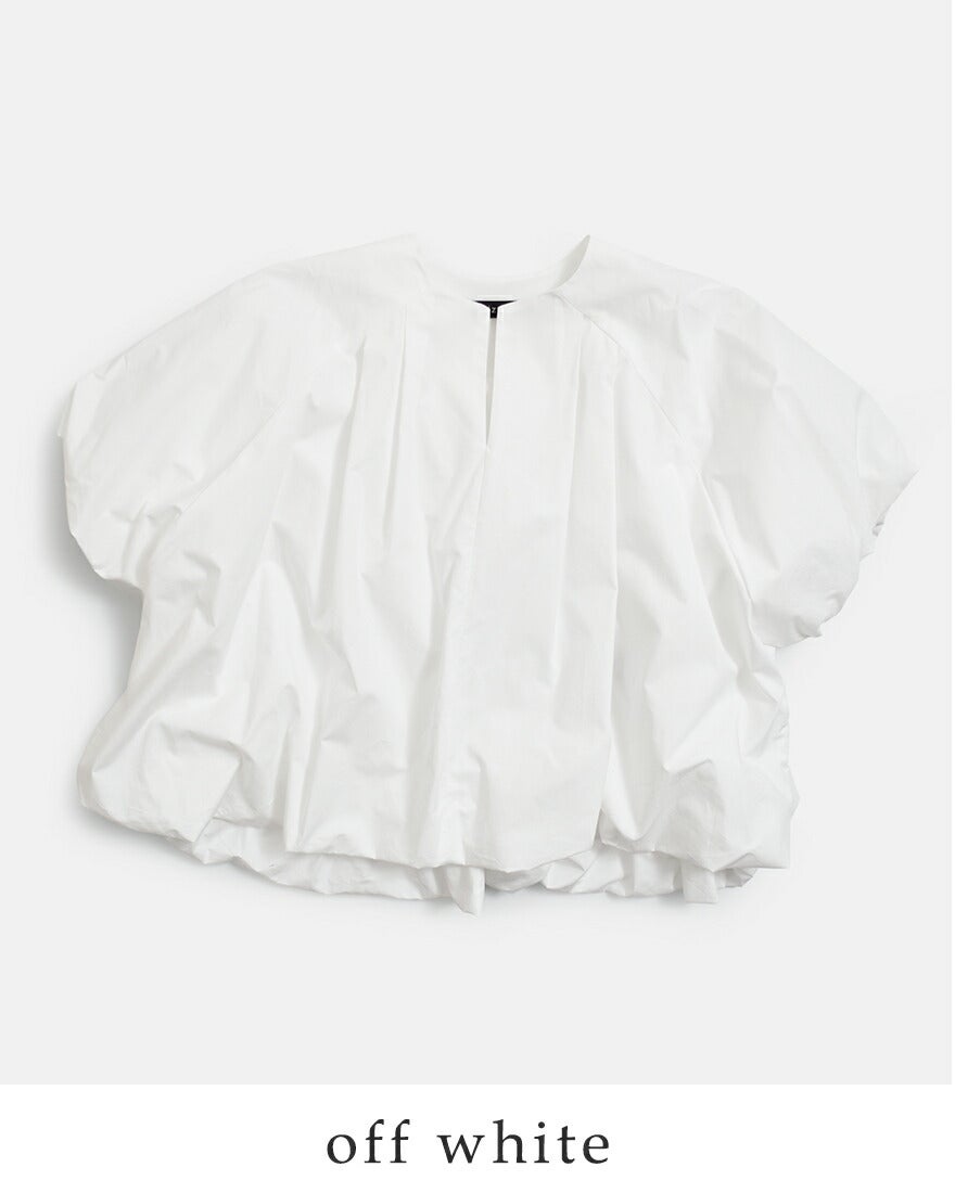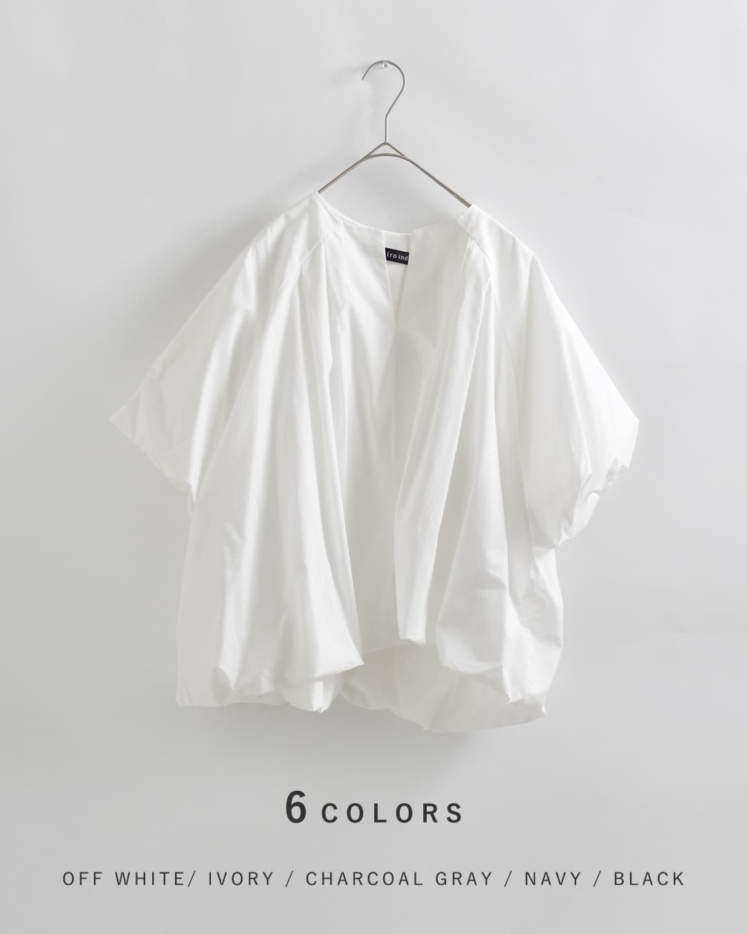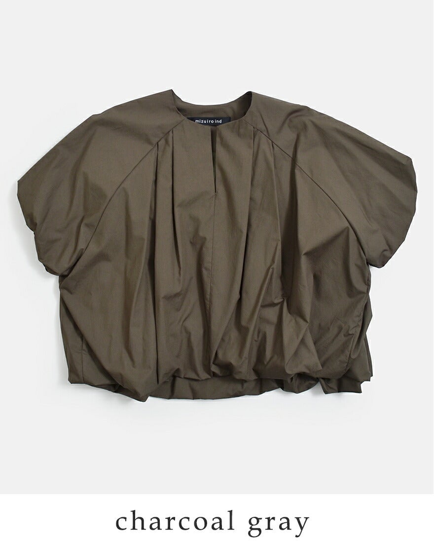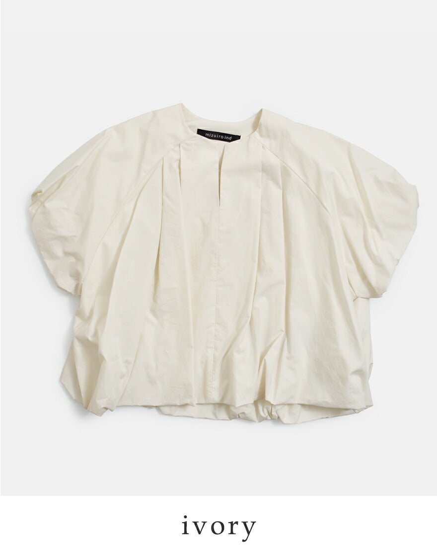 袖裾たっぷりボリュームふんわりシルエットバルーンノーカラーシャツ首元スリットデザイン背面タックリラックス裏地付き前後差ある着丈 mizuiro ind ミズイロインド コットン バルーン ノーカラー シャツ 1-230163 レディース 2026ss新作 春夏
