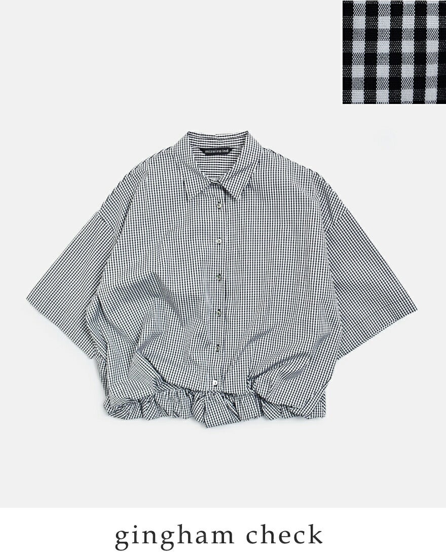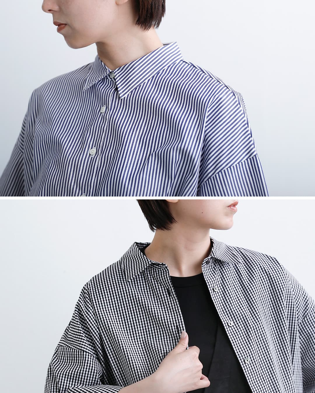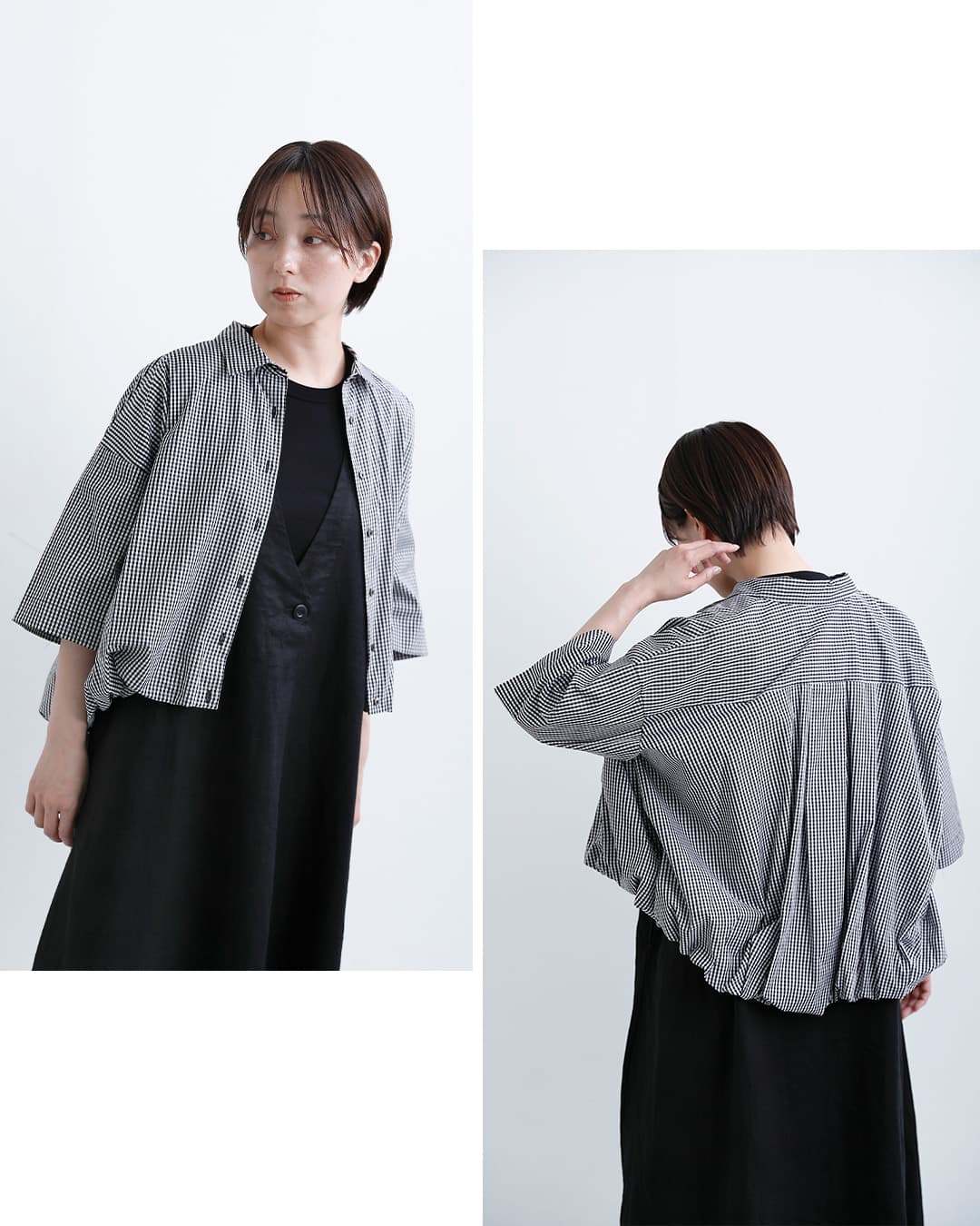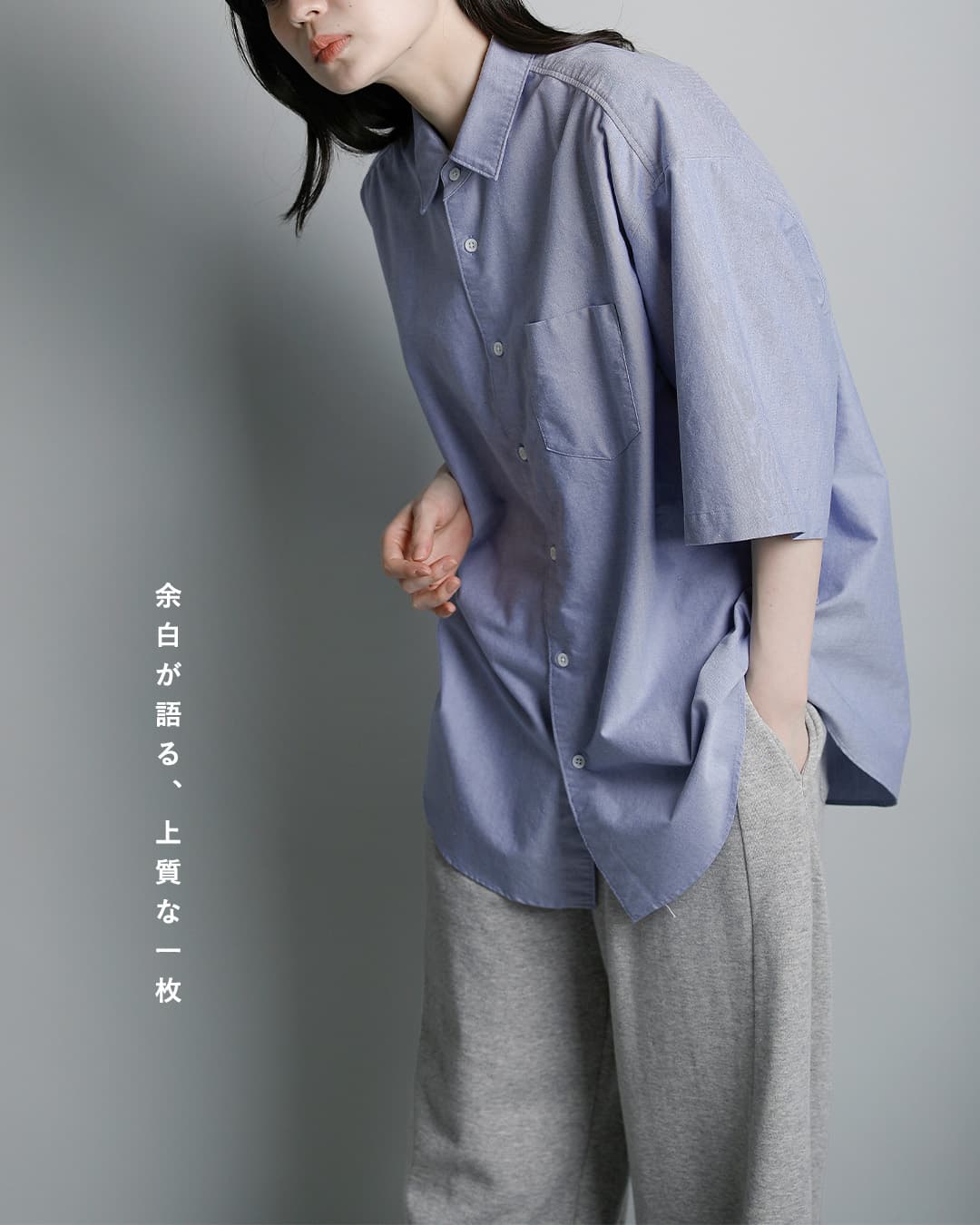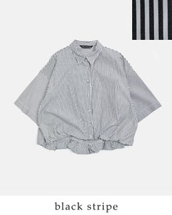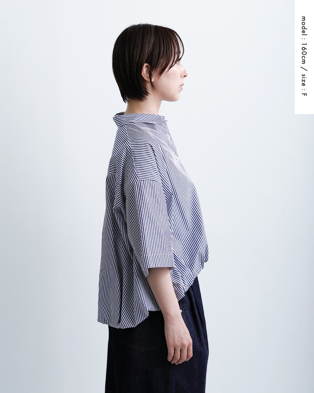 ふんわりとした裾バルーンのシルエットが魅力的風通しの良い5分袖のコットンストライプハーフスリーブバルーンシャツ mizuiro ind ミズイロインド コットン ストライプ ハーフスリーブ バルーン シャツ 2-230129 レディース 2026ss新作 春夏