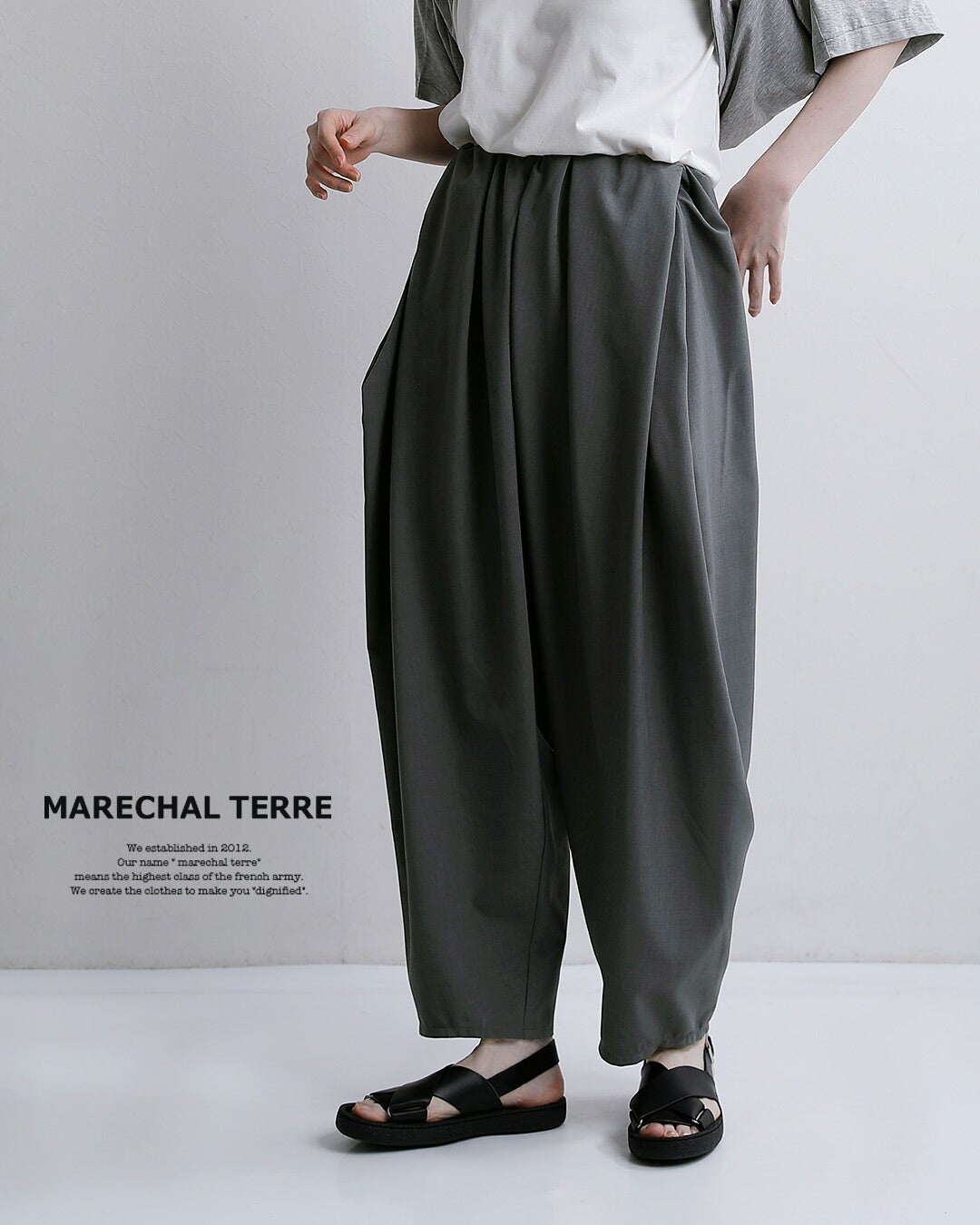 ドライタッチ接触冷感UVカット速乾性吸汗性多機能素材のコクーンシルエットワイドパンツ 【クーポン対象】MARECHAL TERRE マルシャルテル 接触冷感 ワイド コクーン ギャザー イージーパンツ zmt262pt137 レディース 2026ss新作 春夏【サイズ交換初回無料】
