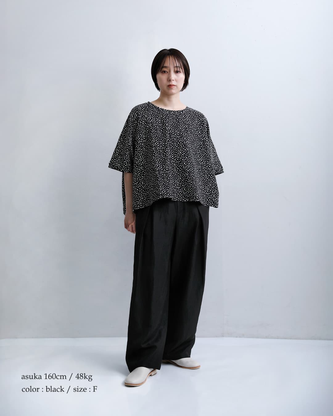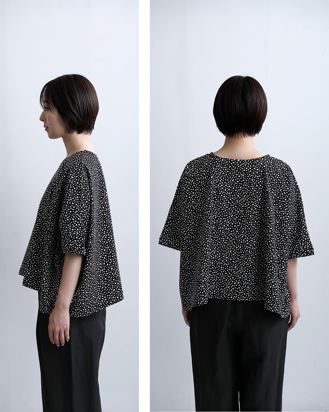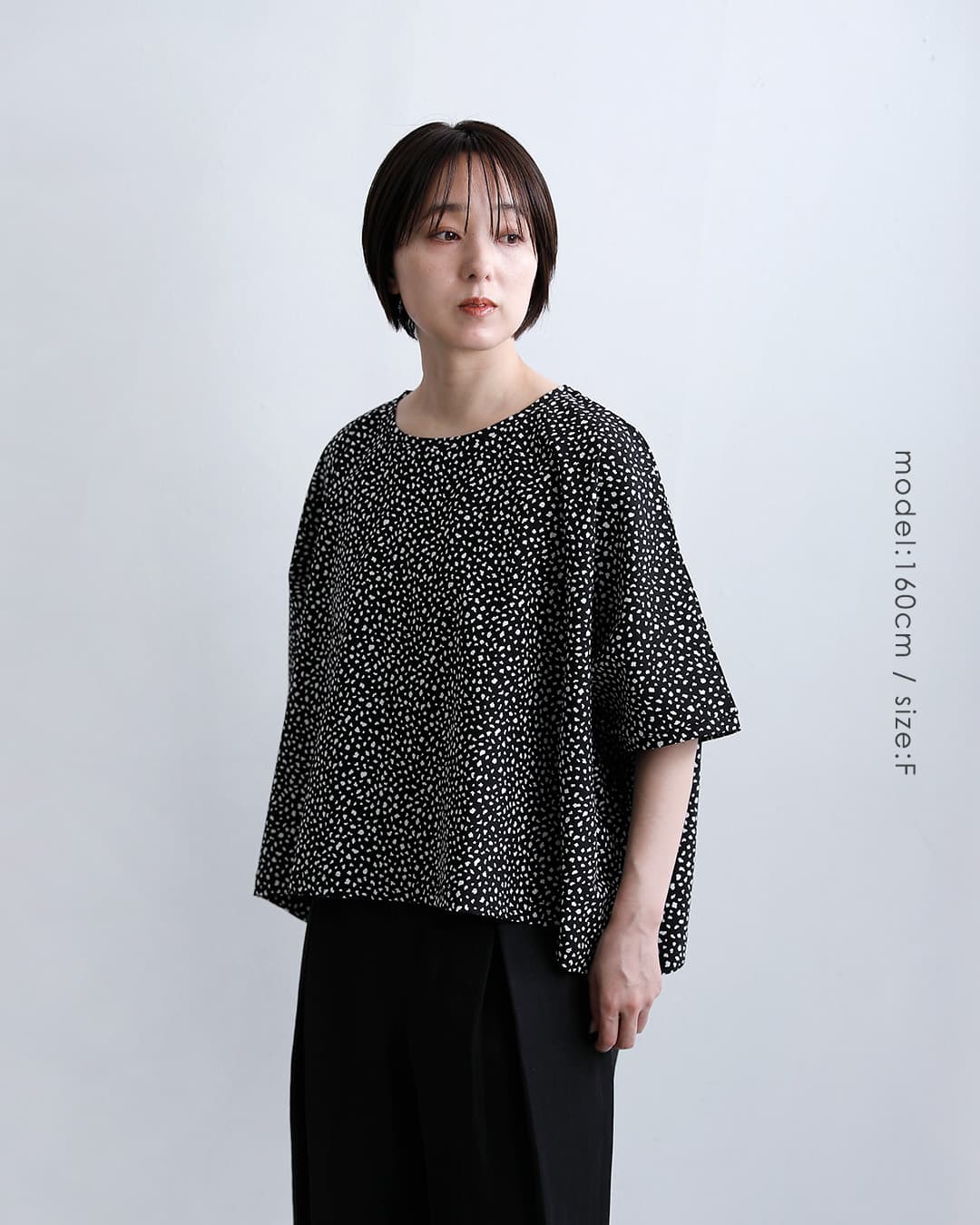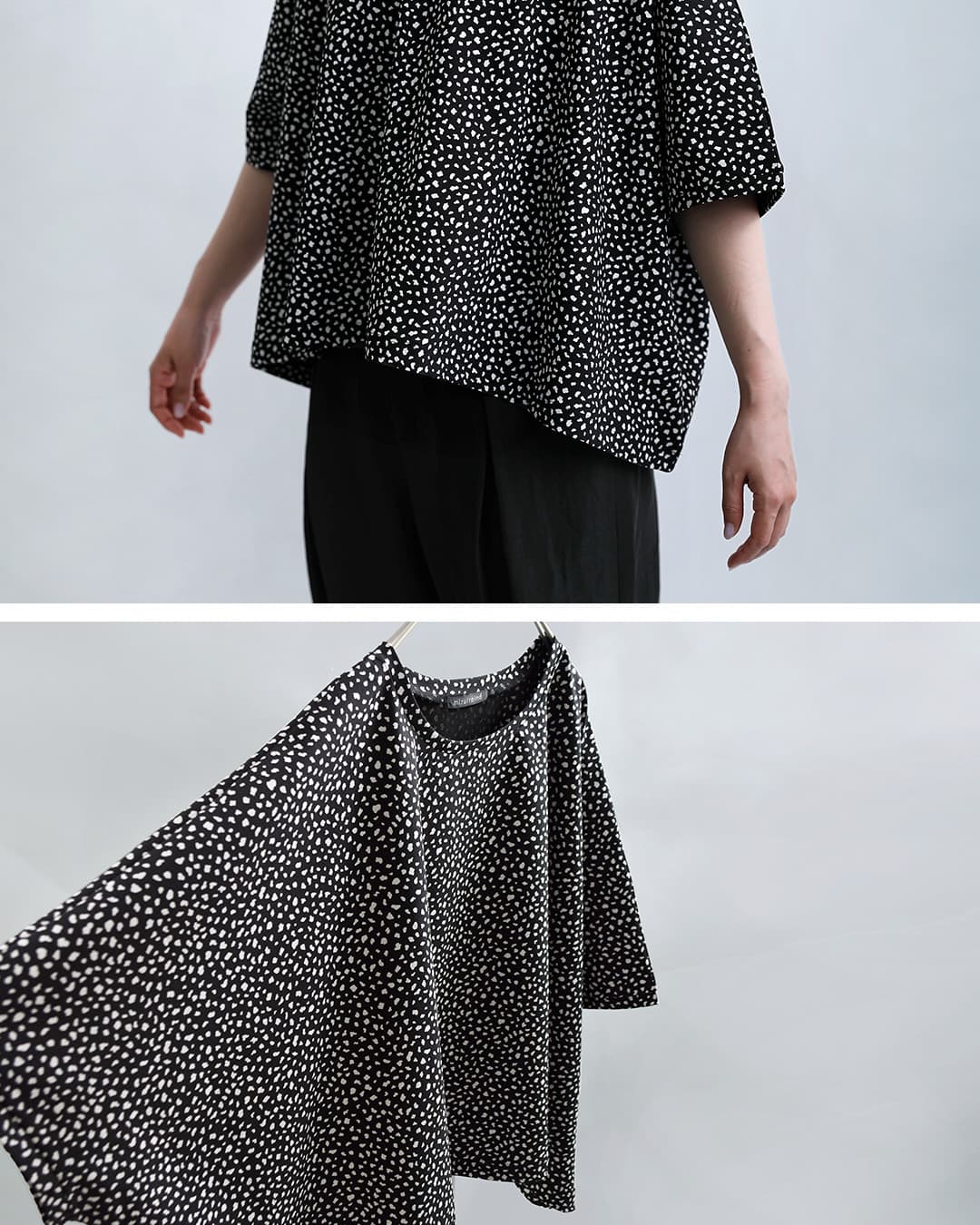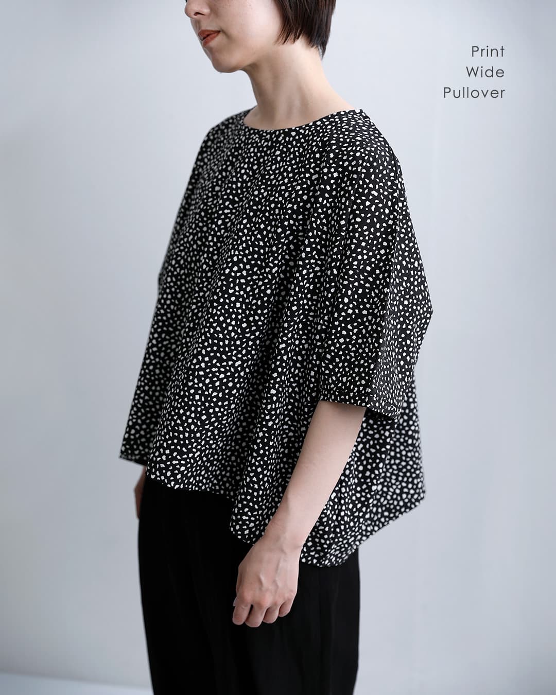 モノトーンのヒョウ柄が映えるmizuiroindのワイドプルオーバー体型カバーと涼しい着心地を叶える大人の柄トップス mizuiro ind ミズイロインド プリント ワイド プルオーバー 1-210081 レディース 2026ss新作 春夏