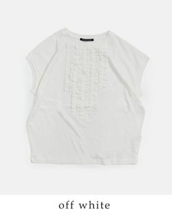 軽やか爽やかリネンコットンキャップフレンチスリーブリブ袖ギャザークルーネック春夏ブラウス 【クーポン対象】fabrique en planete terre ファブリケ アン プラネテール リネン コンビ キャップスリーブ プルオーバー シャツ 261-122 レディース 2026ss新作 春夏