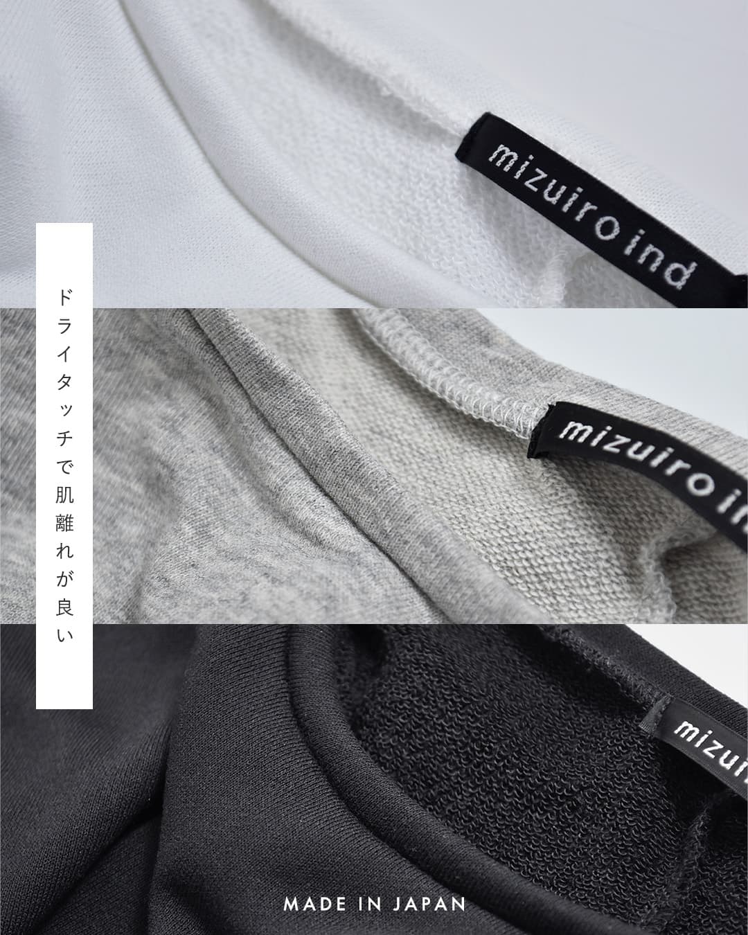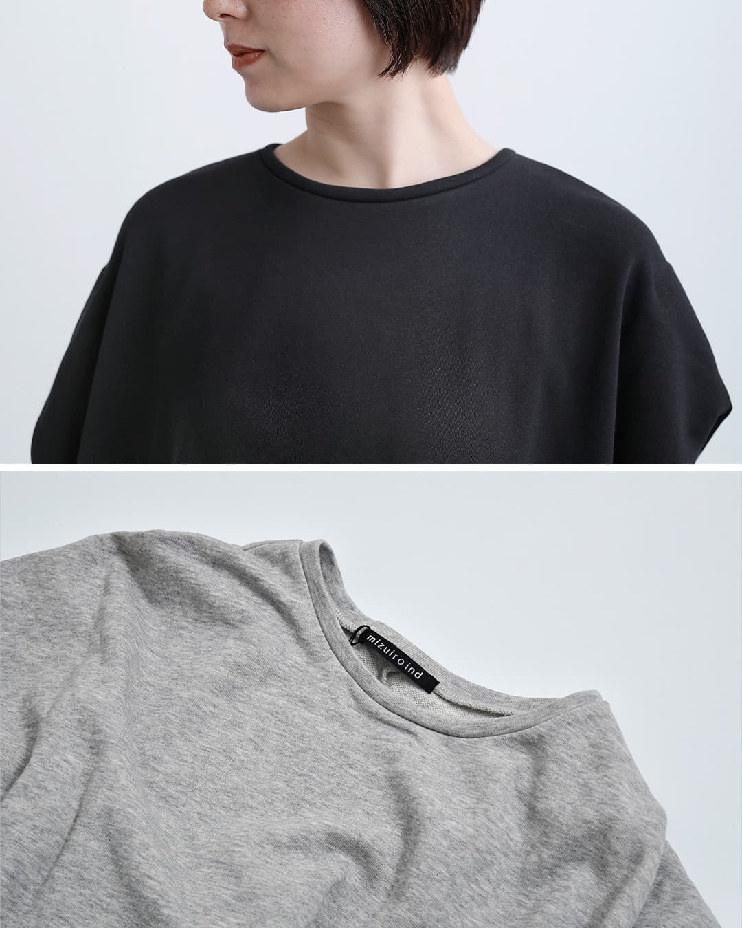 スウェット生地であるドライフレンチテリー素材を使用吸汗性速乾性通気性に優れ汗ばむ季節もさらりと着用できる日本製フリースロングワンピース mizuiro ind ミズイロインド フリース ロング ワンピース 1-250085 レディース 2026ss新作 春夏
