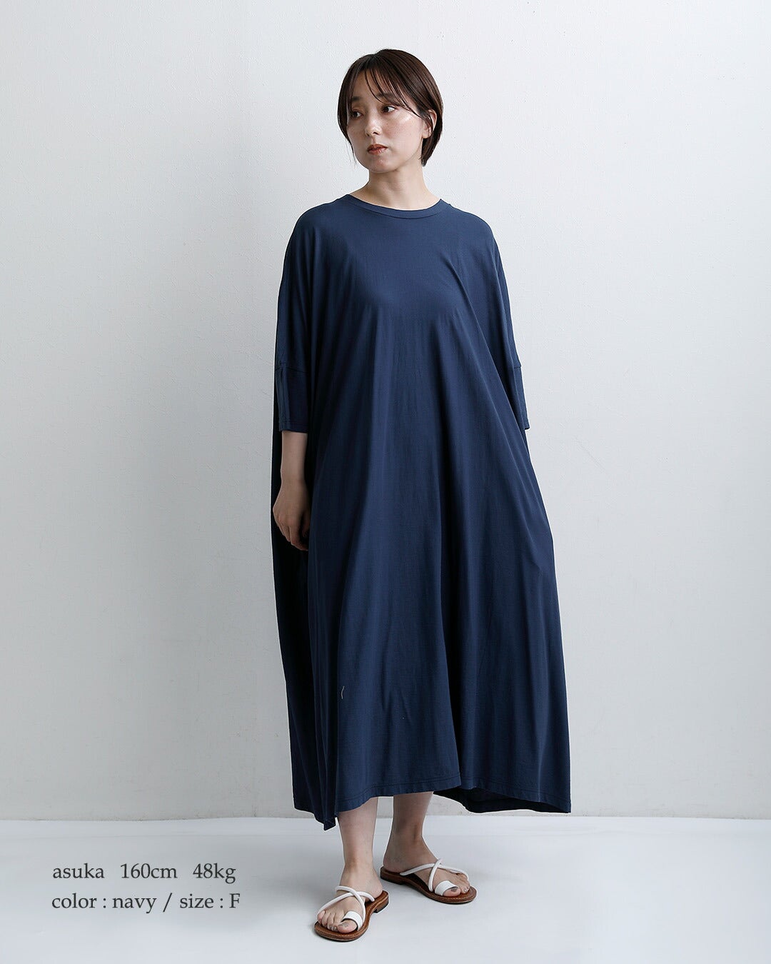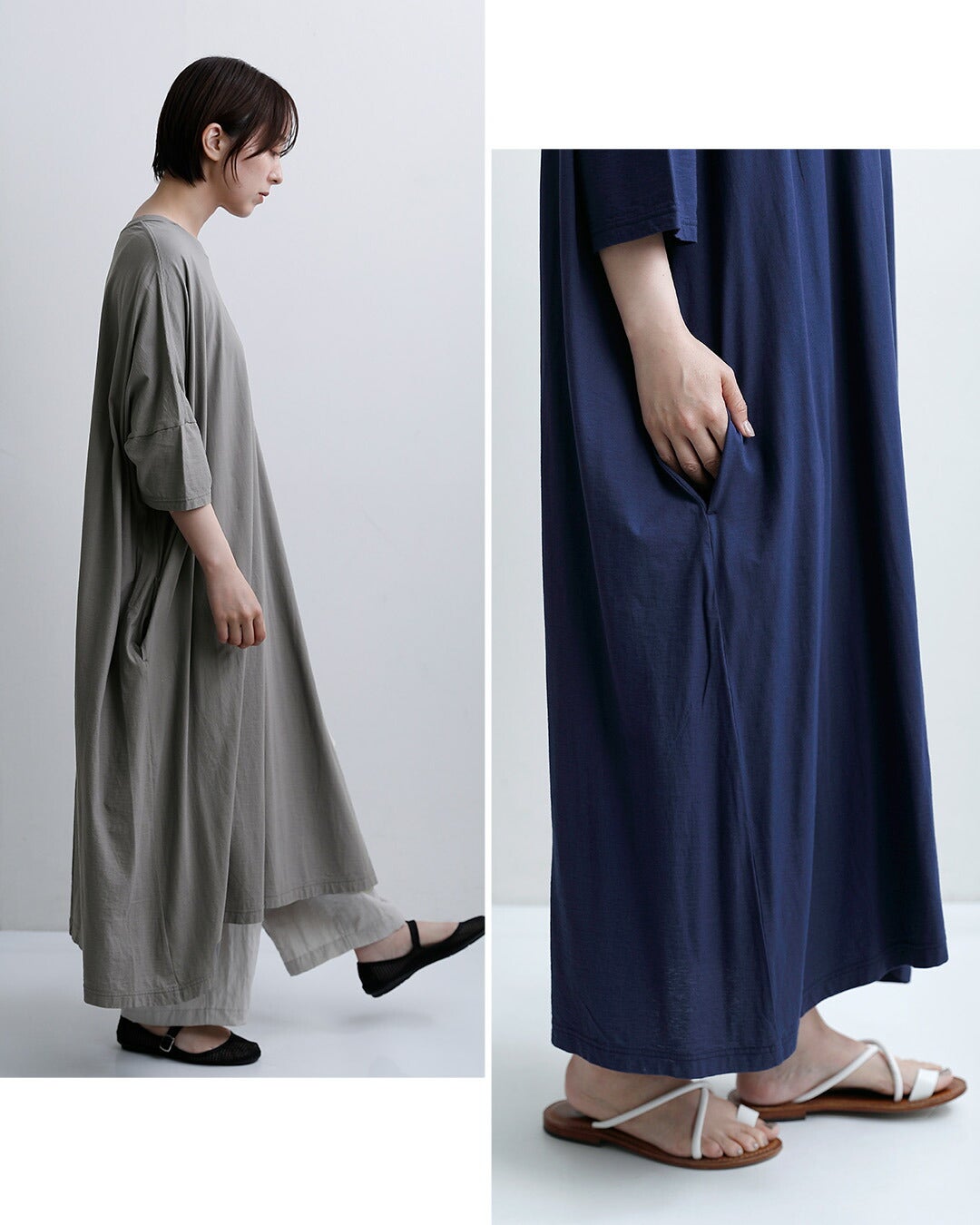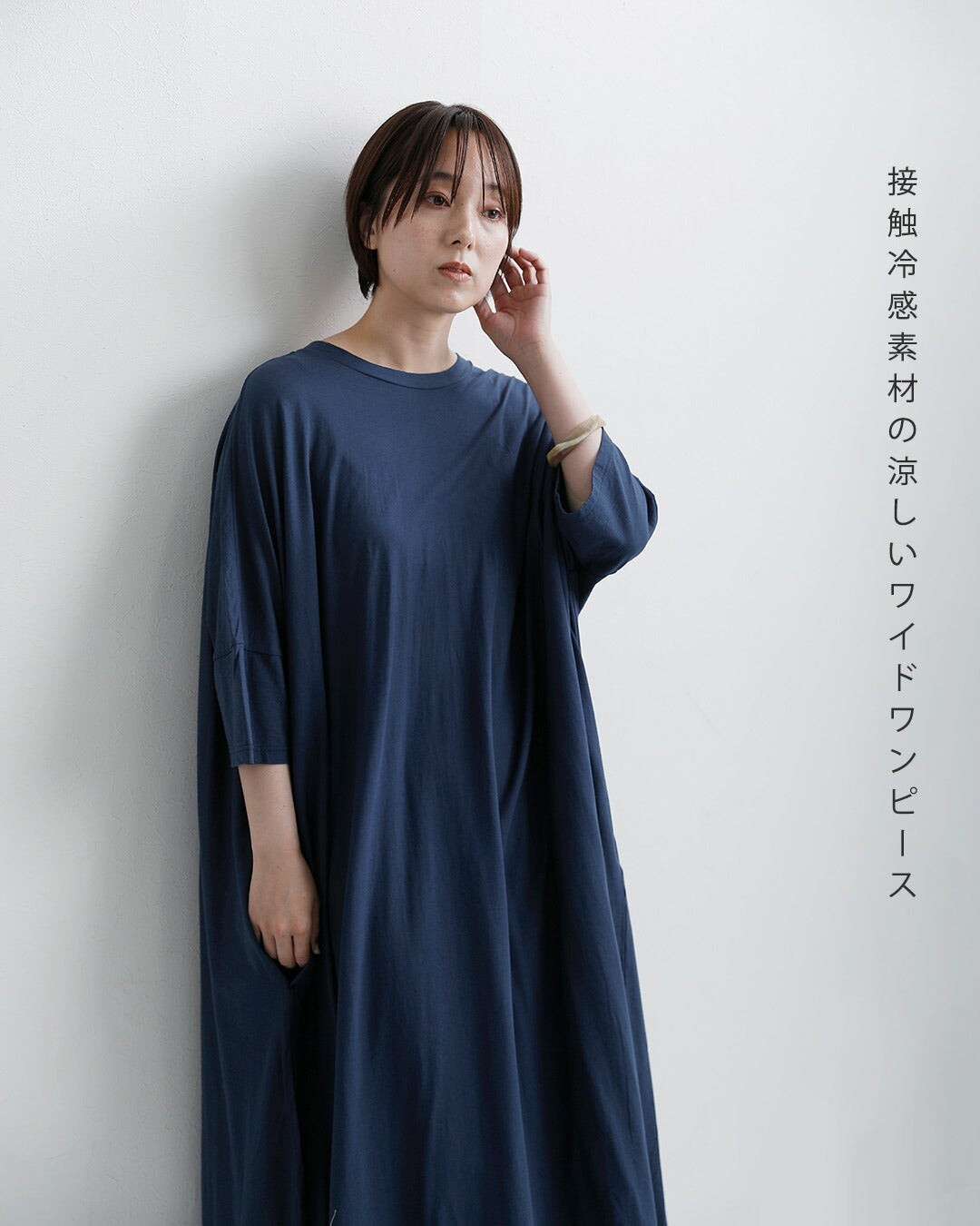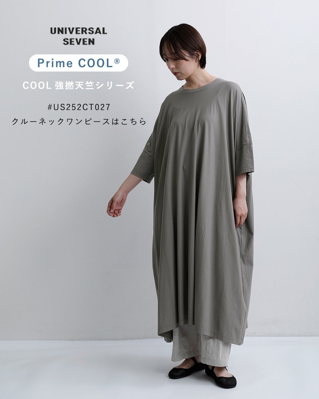 ひんやり涼しい接触冷感素材のワイドゆったり落ち感とフレアラインがきれいなワンピース universal seven ユニヴァーサルセブン COOL強撚天竺 クルーネック ワンピース us252ct027 レディース 2026ss新作 春夏