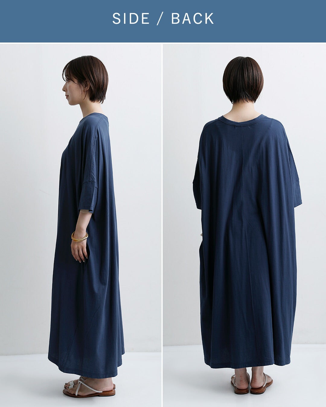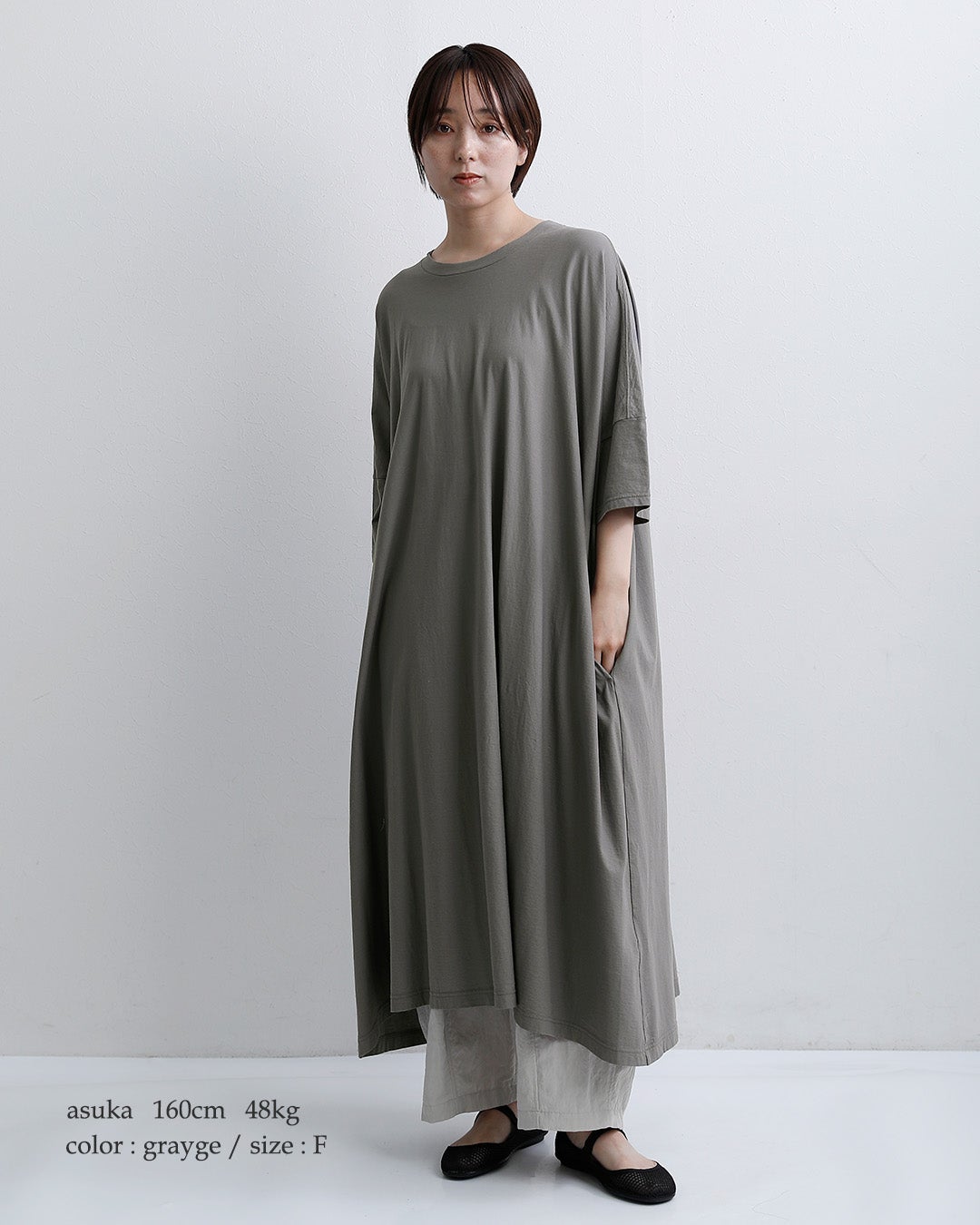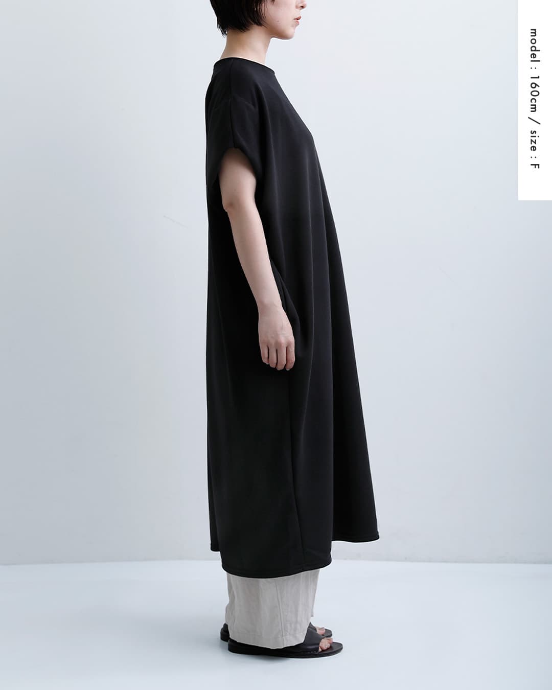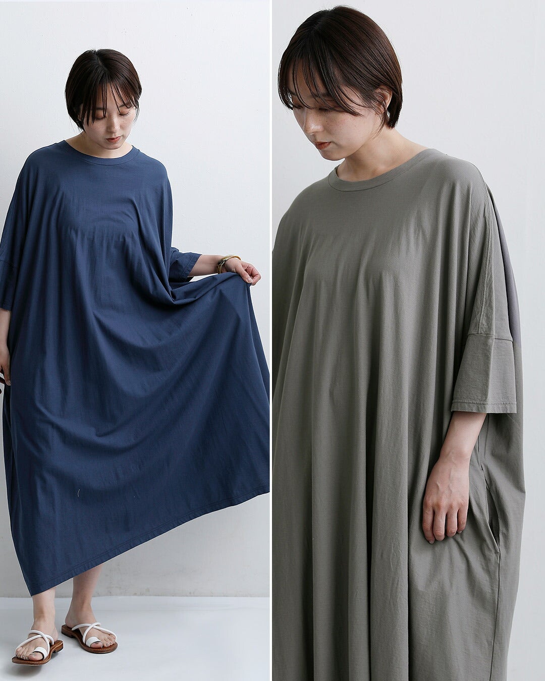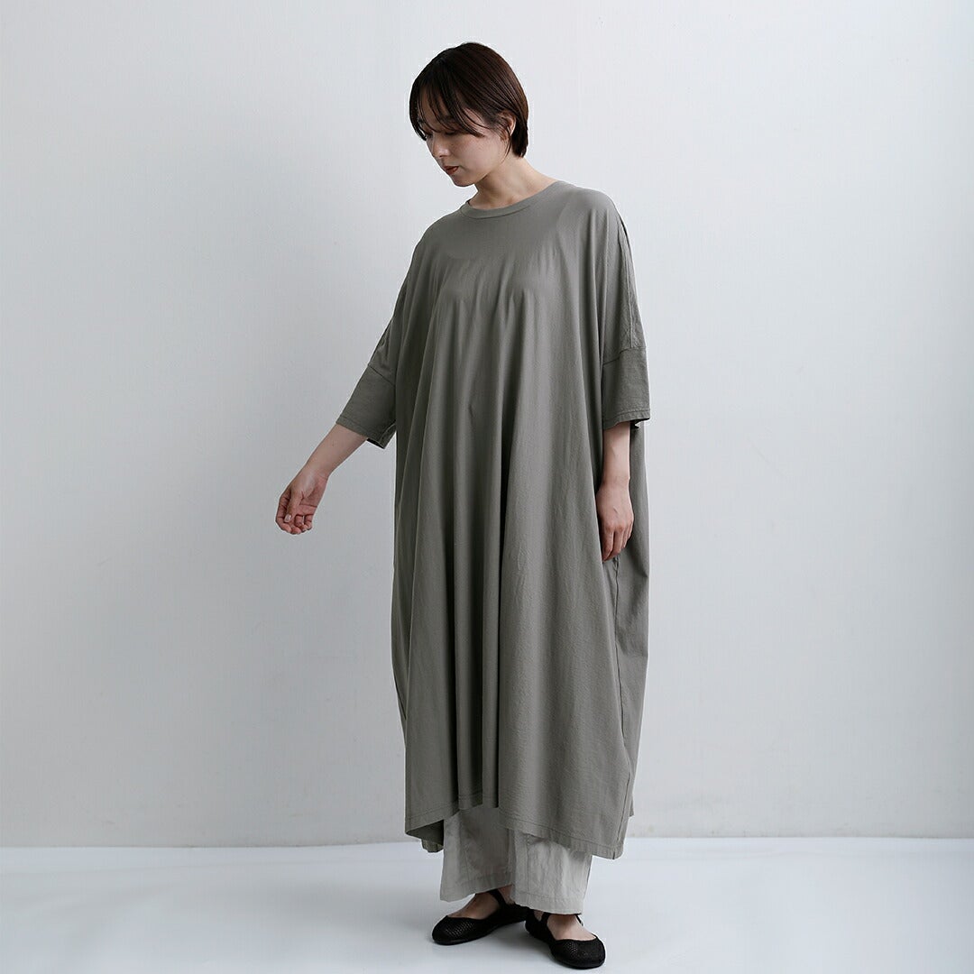 ひんやり涼しい接触冷感素材のワイドゆったり落ち感とフレアラインがきれいなワンピース universal seven ユニヴァーサルセブン COOL強撚天竺 クルーネック ワンピース us252ct027 レディース 2026ss新作 春夏