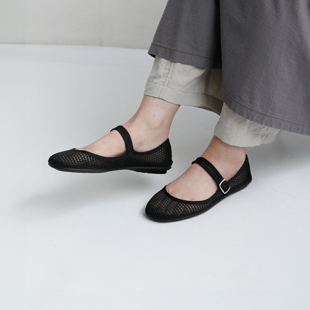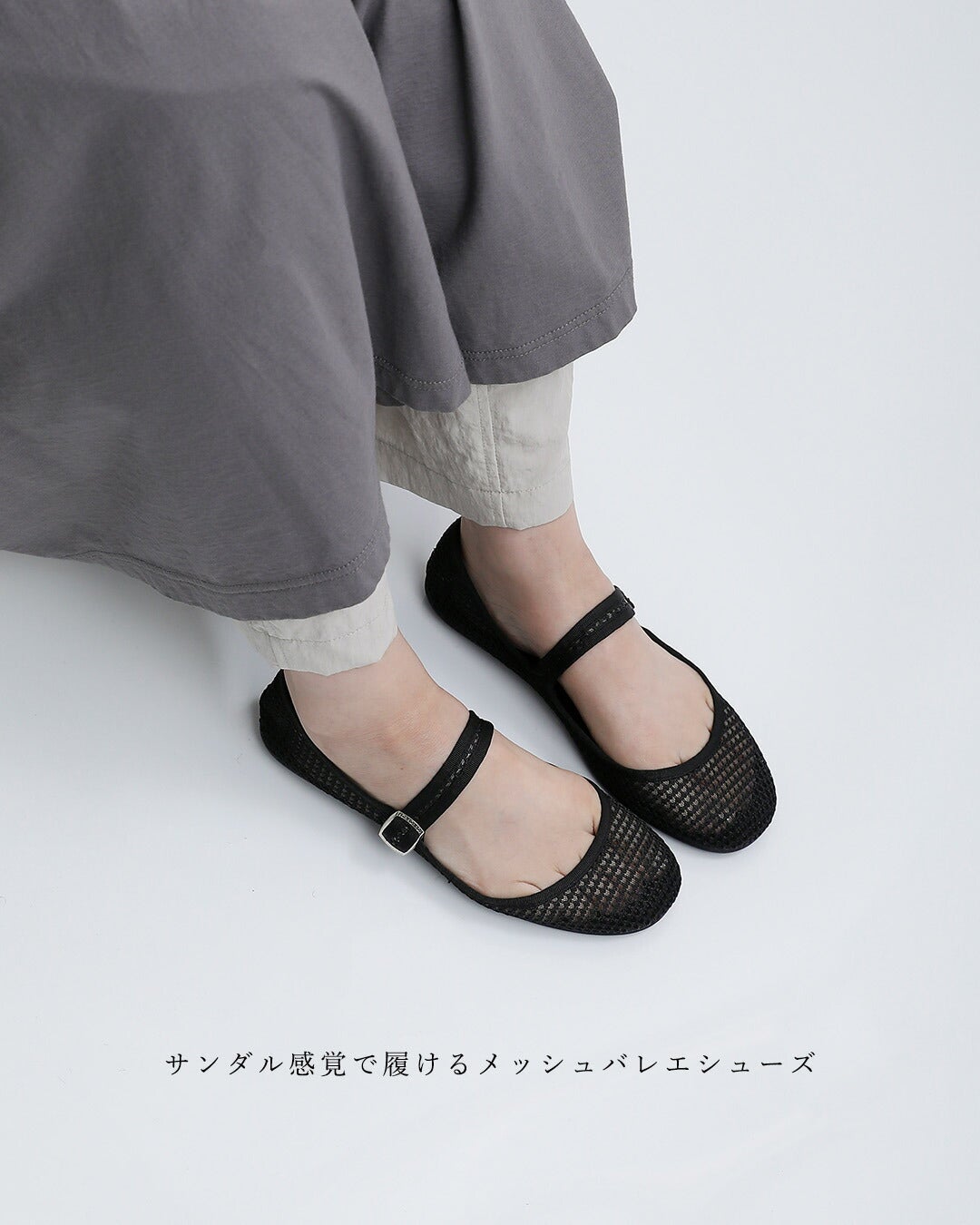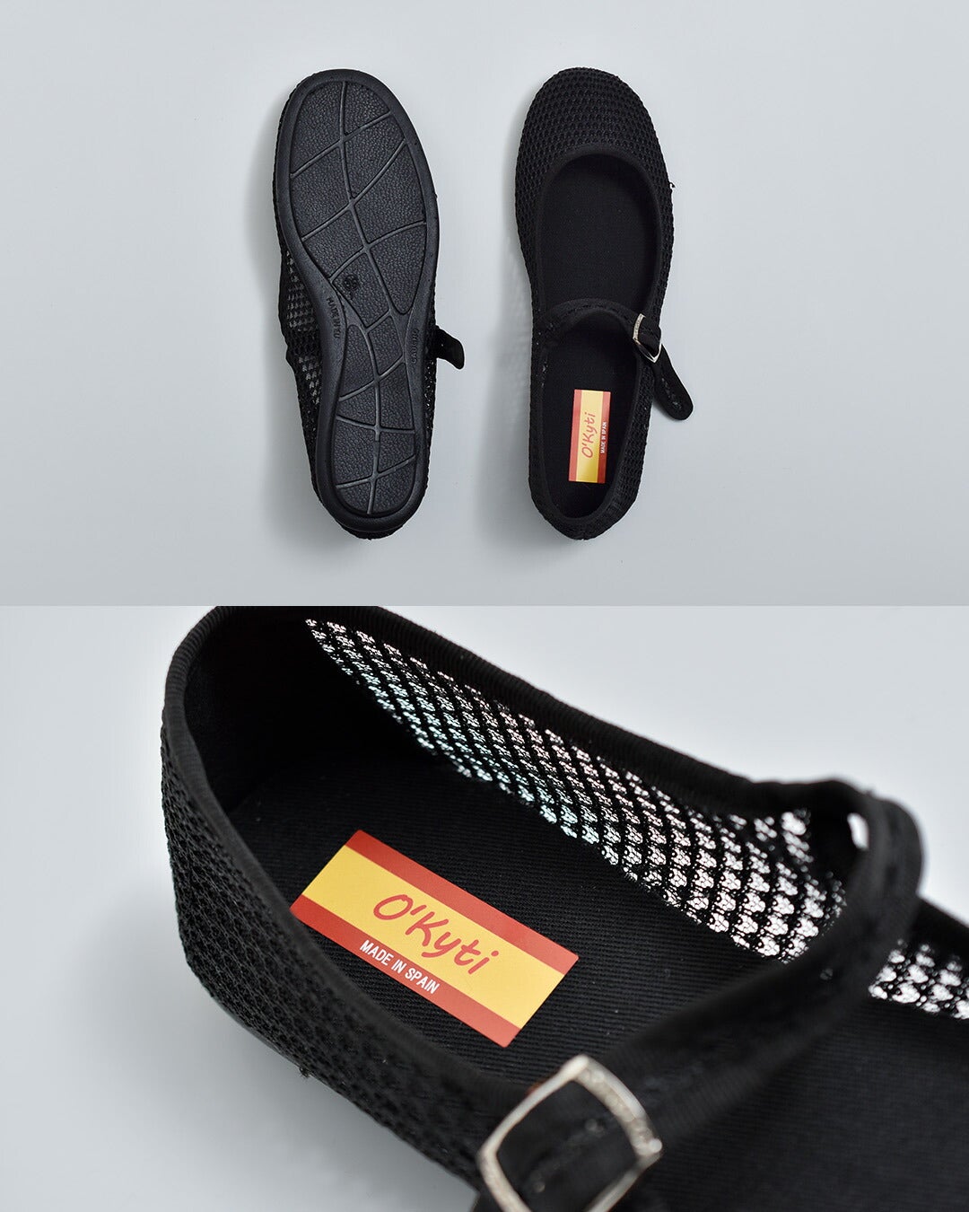 サンダル感覚で履けるメッシュ素材アッパーを使用した軽量スペイン産バレエシューズ O’KYTI オキティ メッシュ ボタンストラップ バレエシューズ 6525-re レディース 2026ss新作 春夏【サイズ交換初回無料】